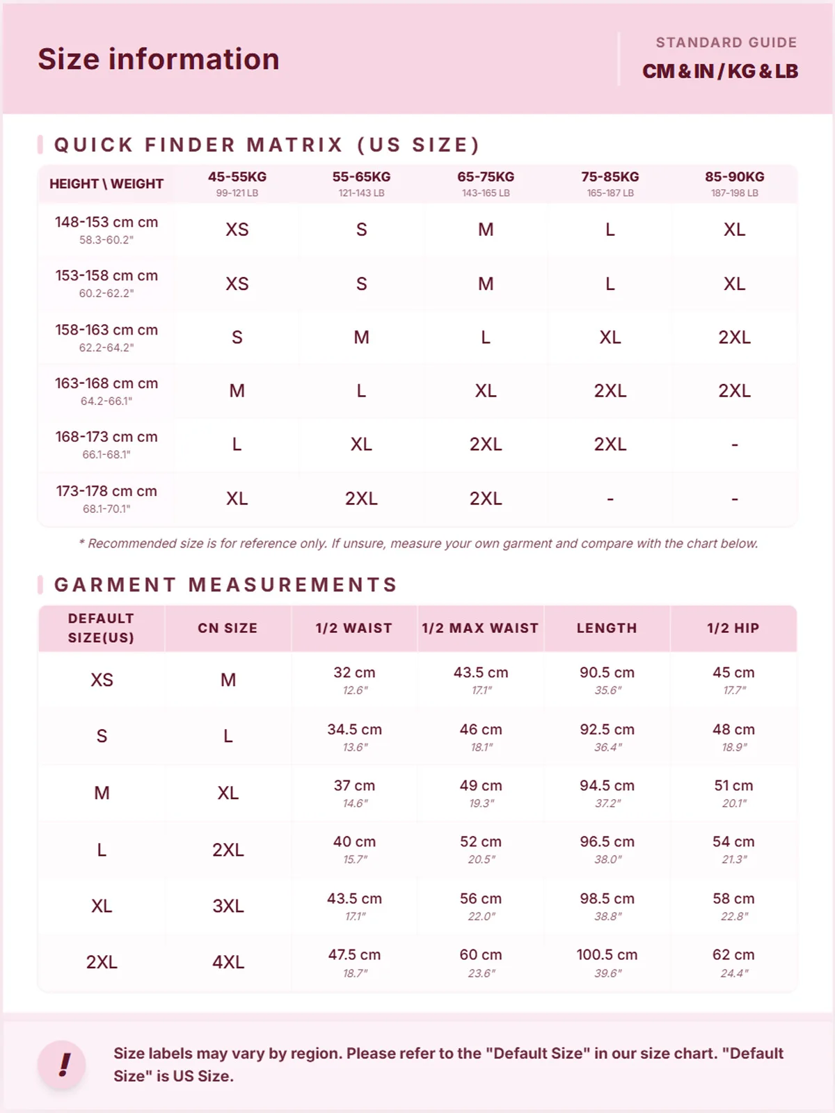 2. Measurement on Size Chart is outer measurement of item; Please Allow 1-3cm Difference in size Measurement.