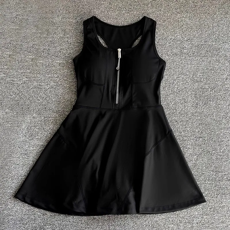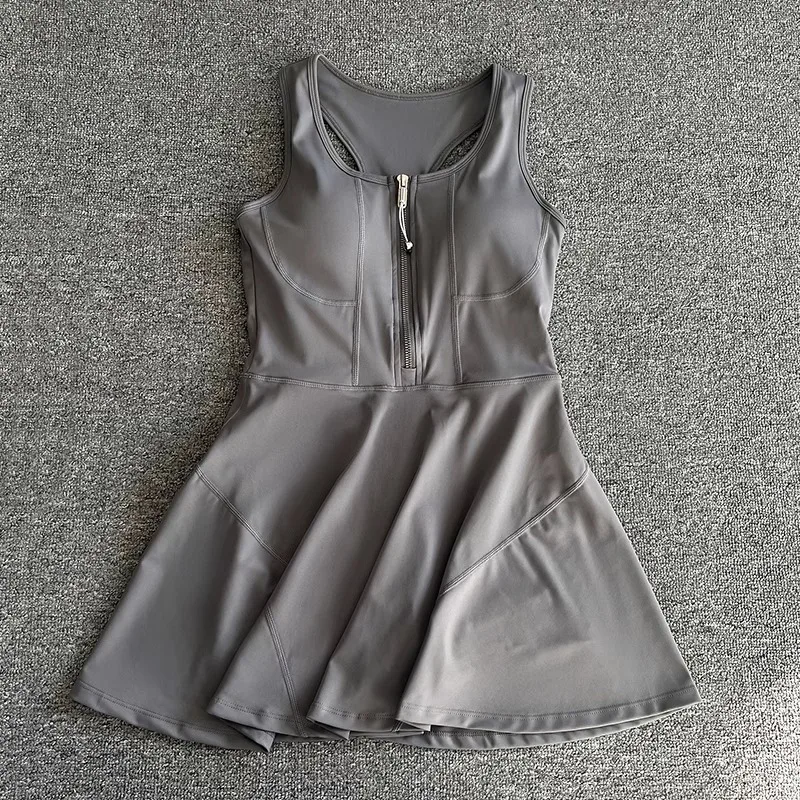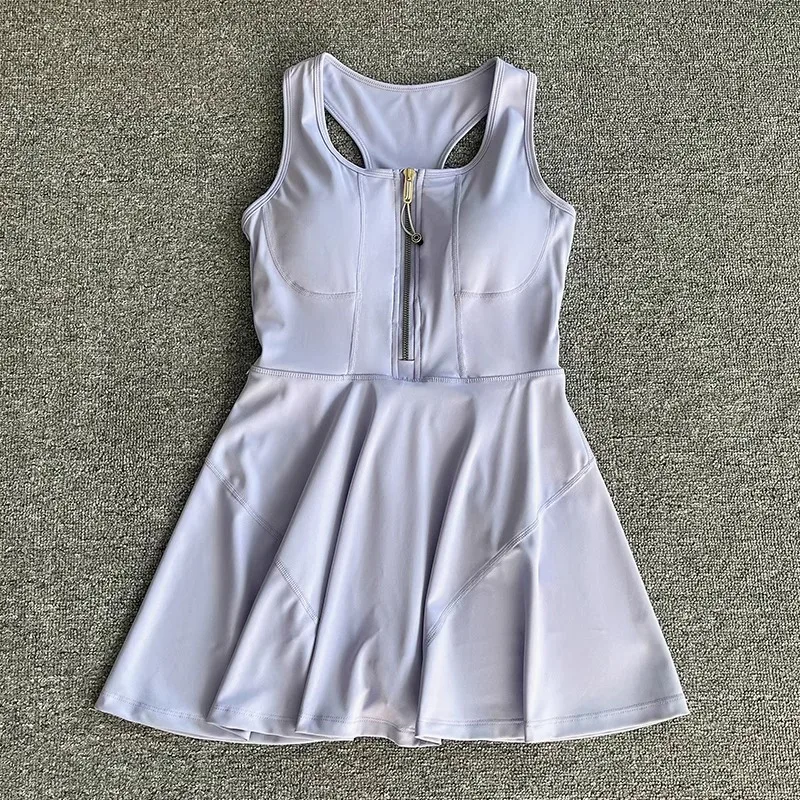 Tennis Skirt Casual Half Zipper Sports Fitness Dress Anti-Running High Waist Slim Golf Yoga Dress