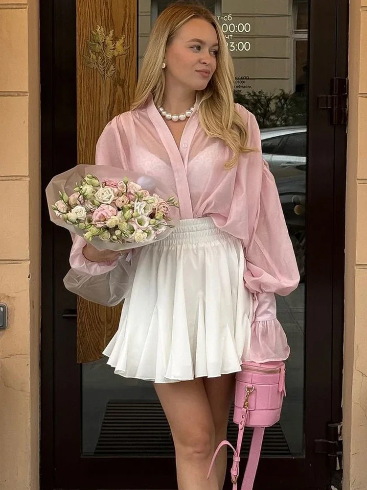 Tossy Casual Loose See-Through Shirts Women’s Autumn Lapel Long Sleeve Patchwork Blouse Top Streetwear Female Solid Shirts Top