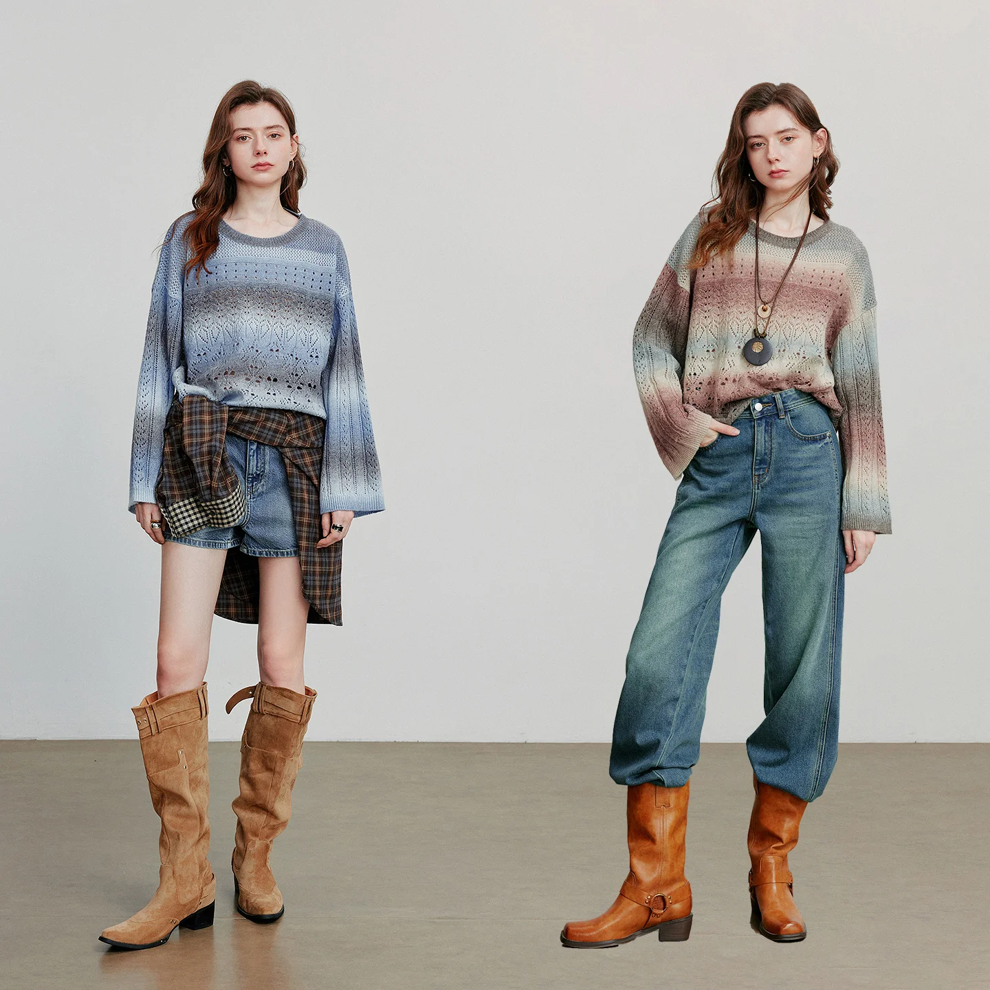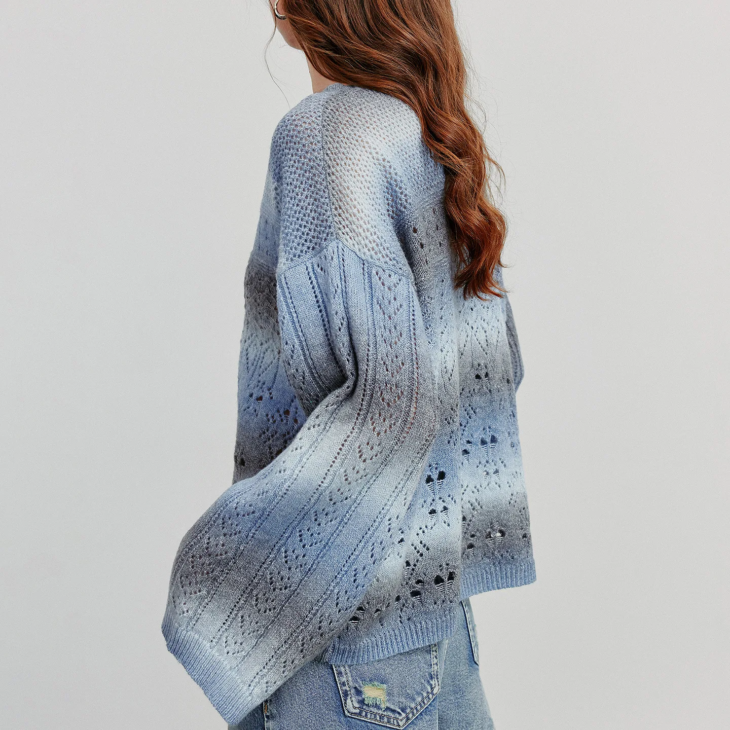 TOYOUTH Women Knitted Shirt 2025 Autumn New Round Neck Gradient Mohair Lightweight Woolen Pullover Tops