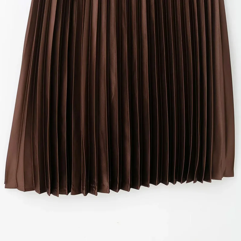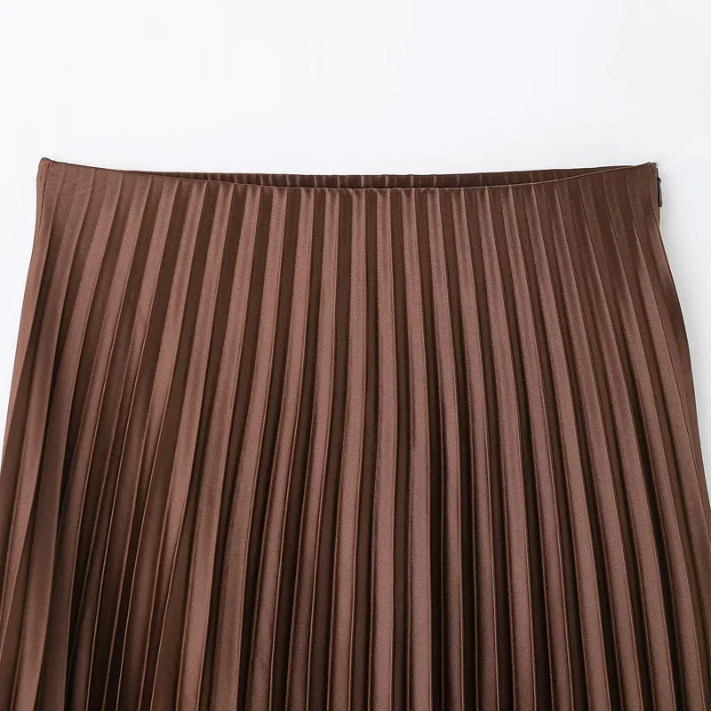 TRAF Elegant Party Midi Skirts 2025 Women’s Spring Mid Waist Pleated Skirts Fashion Casual Vintage Beige Brown Long Skirts