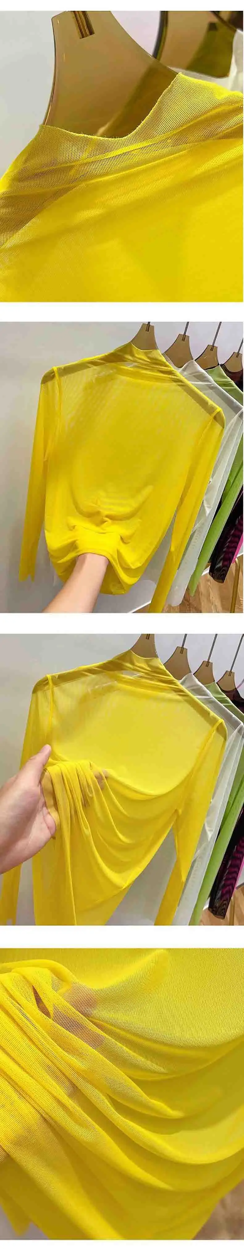 Transparent Gauze Bottoming T-shirt Women Clothing Summer Long Sleeved T-shirt with Gauze Shirt Half High Collar Sunscreen 2024