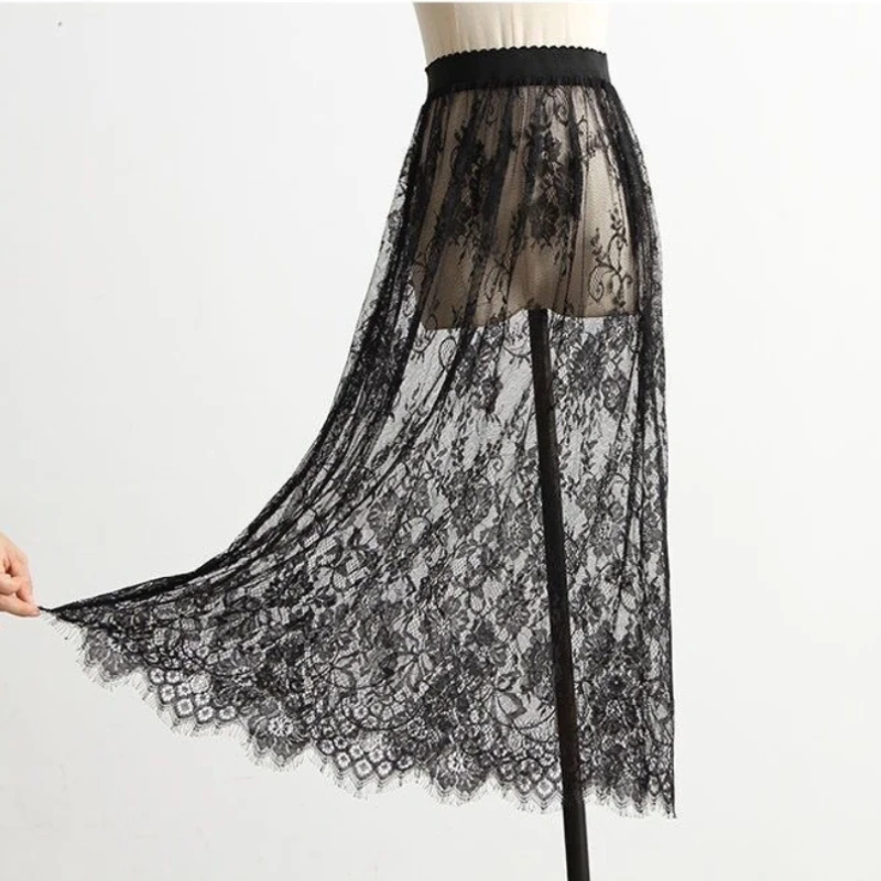 Transparent Sexy Lace Mesh Skirt Elastic High Waist Black White Tulle Mini Skirts Womens Skirt Korean Fashion Women’s Skirt 2025