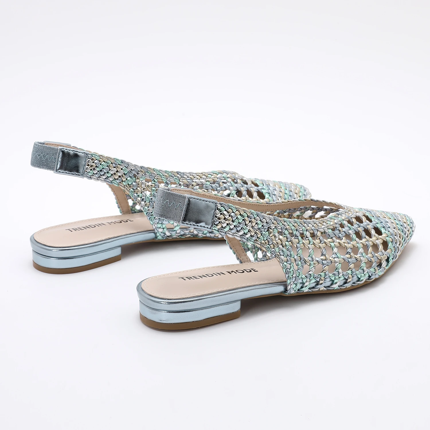 Trendin Mode Women Braided Pointed Toe Slingback Fashion Flat Bottom Elastic Backstrap Sandals
