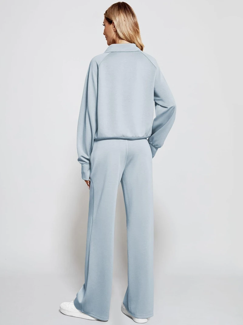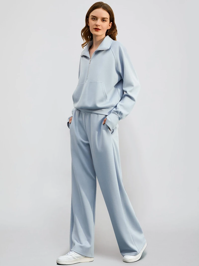 Trendy 2Pcs Lounge Set For Women Long-Sleeve Stand Collar With Zipper Top And Drawstring Pant Fit Jogging Loungewear Casual Wear