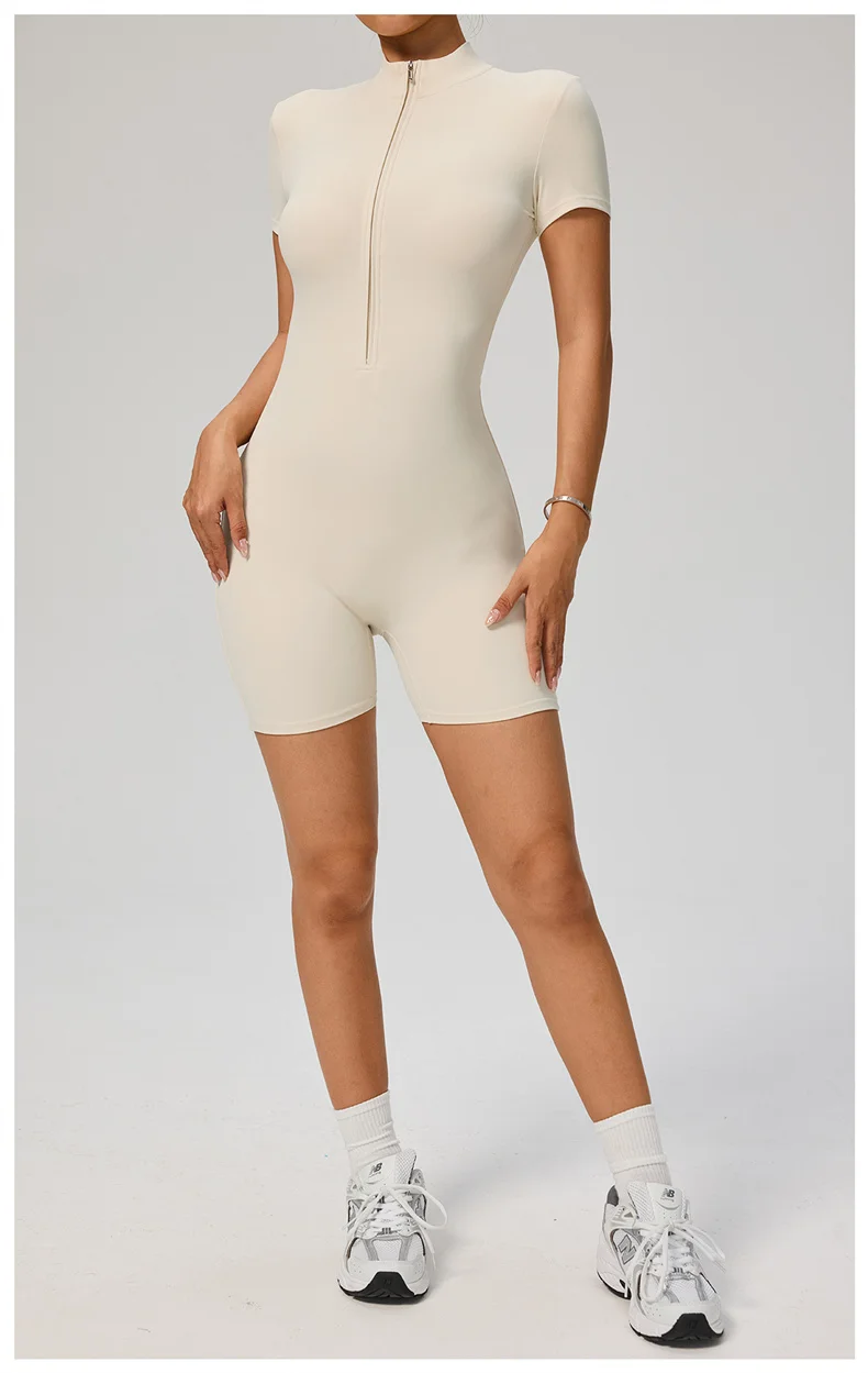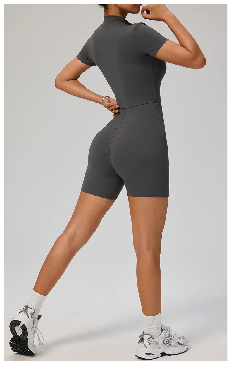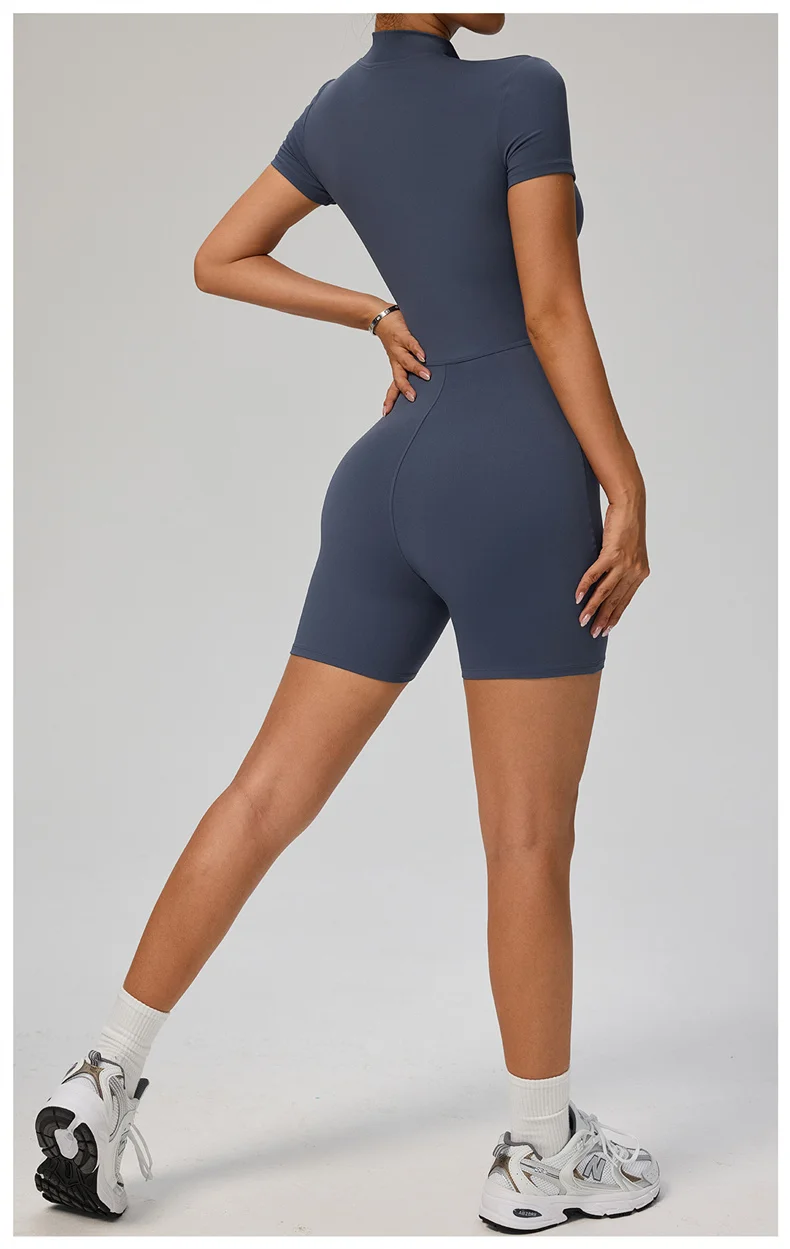 TRY TO BN Sports Jumpsuit Zipper Short Sleeves Yoga Sportswear Fitness Workout Bodysuit One Piece Suits Tights Gym Woman Clothes