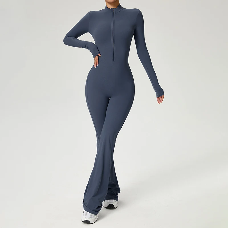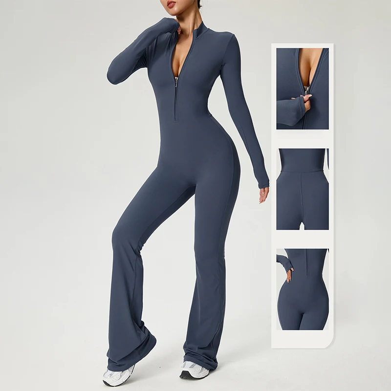 TRY TO BN Women’s Fitness Jumpsuit Long Sleeve Zipper High Strength Yoga Bodysuit For Gym Workout Sportswear One Piece Clothing