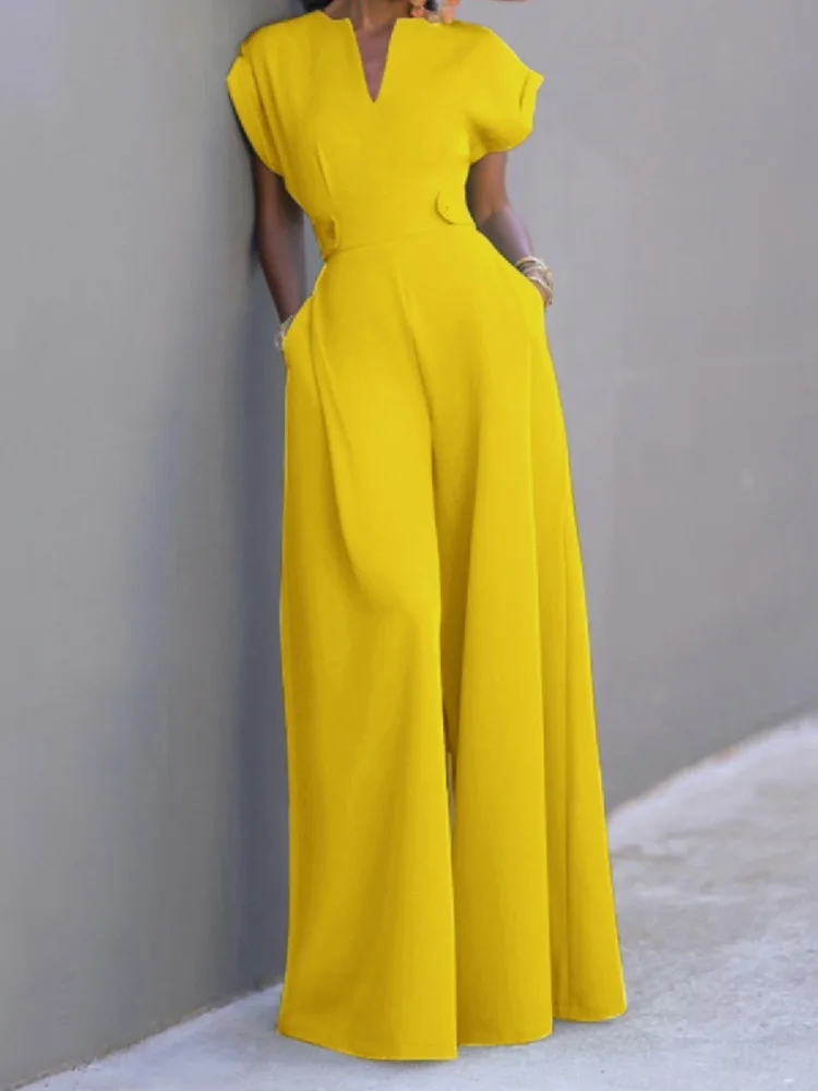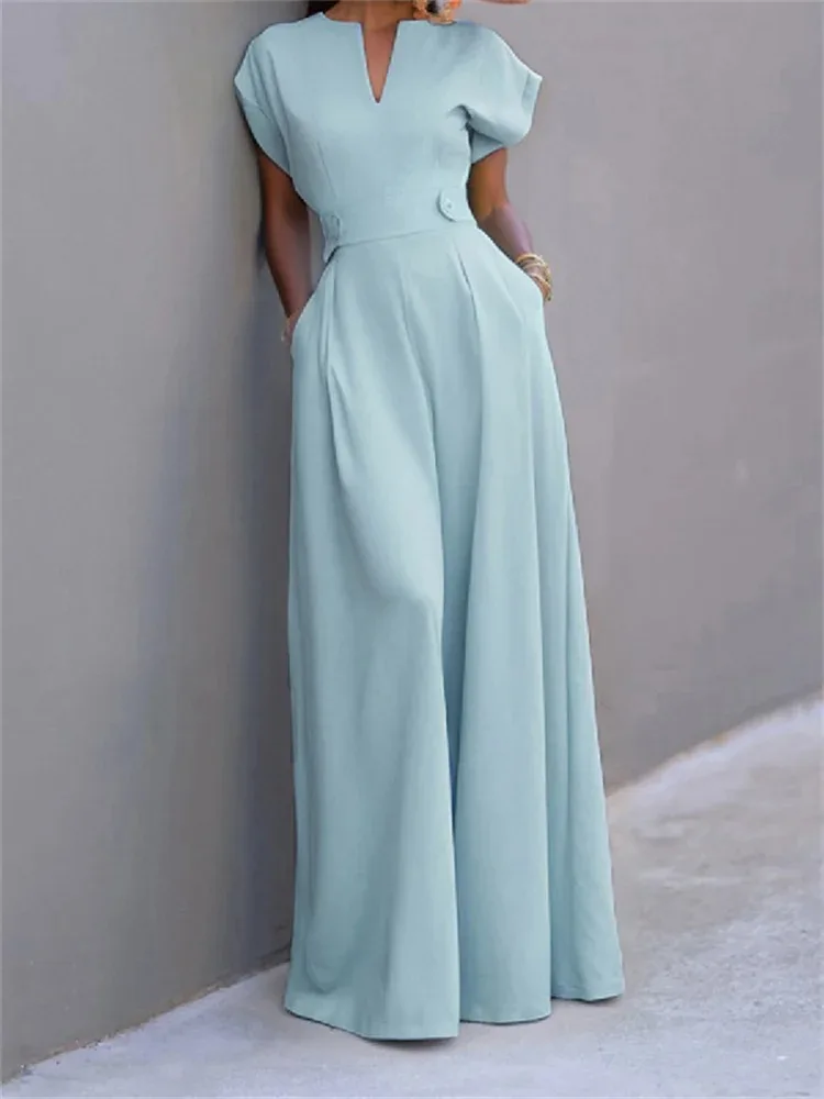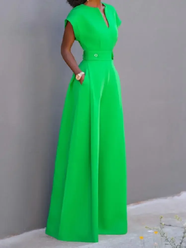 UOOZEE Women’s Jumpsuits 2025 V-Neck Cap Sleeves High Waisted Wide Leg Solid Color Loose Elegant Office Commute Formal Overalls