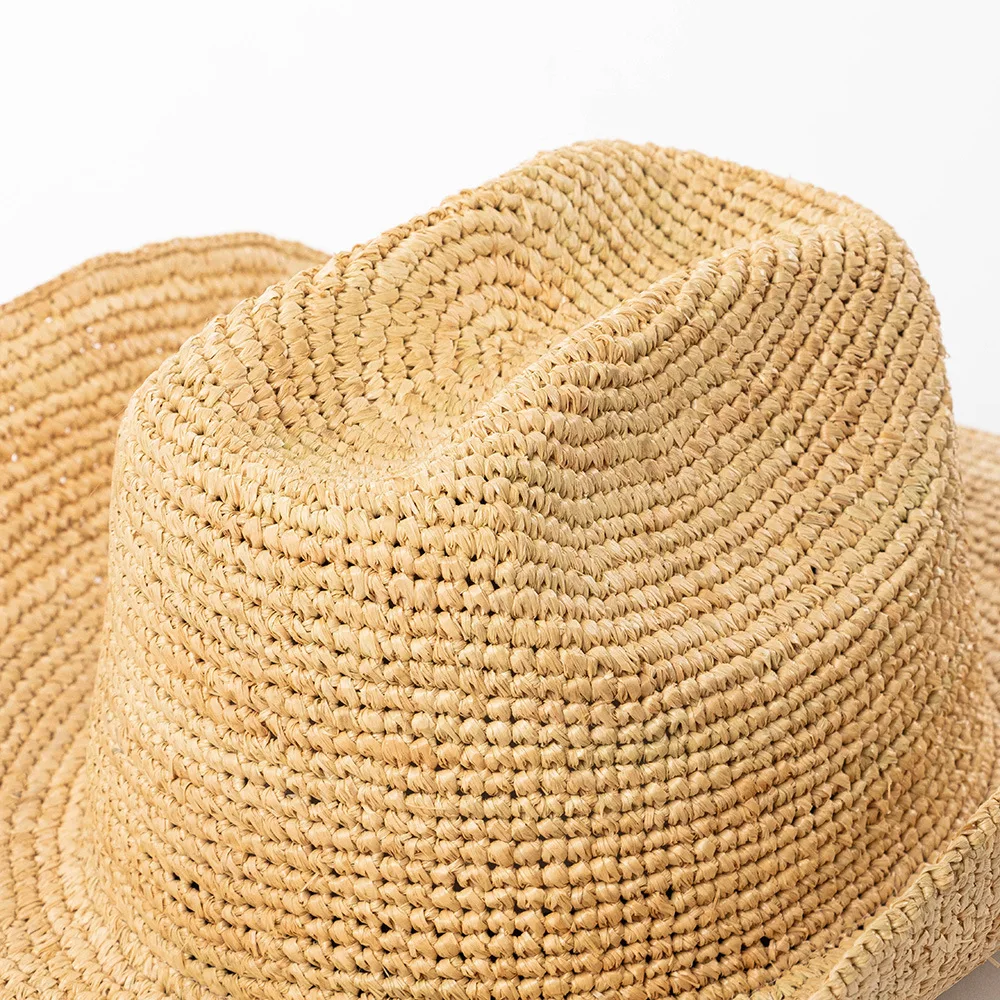 USPOP Hand-crocheted Natural Raffia Straw Cowboy Hat for Women Men Summer Wide Brim Sun Hat Outdoor Breathable Beach Caps