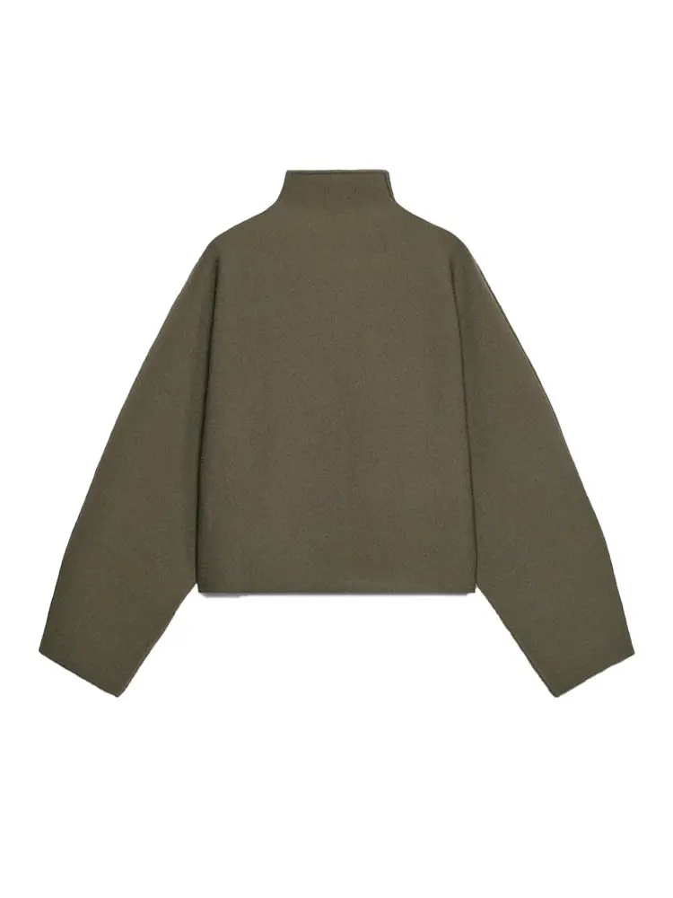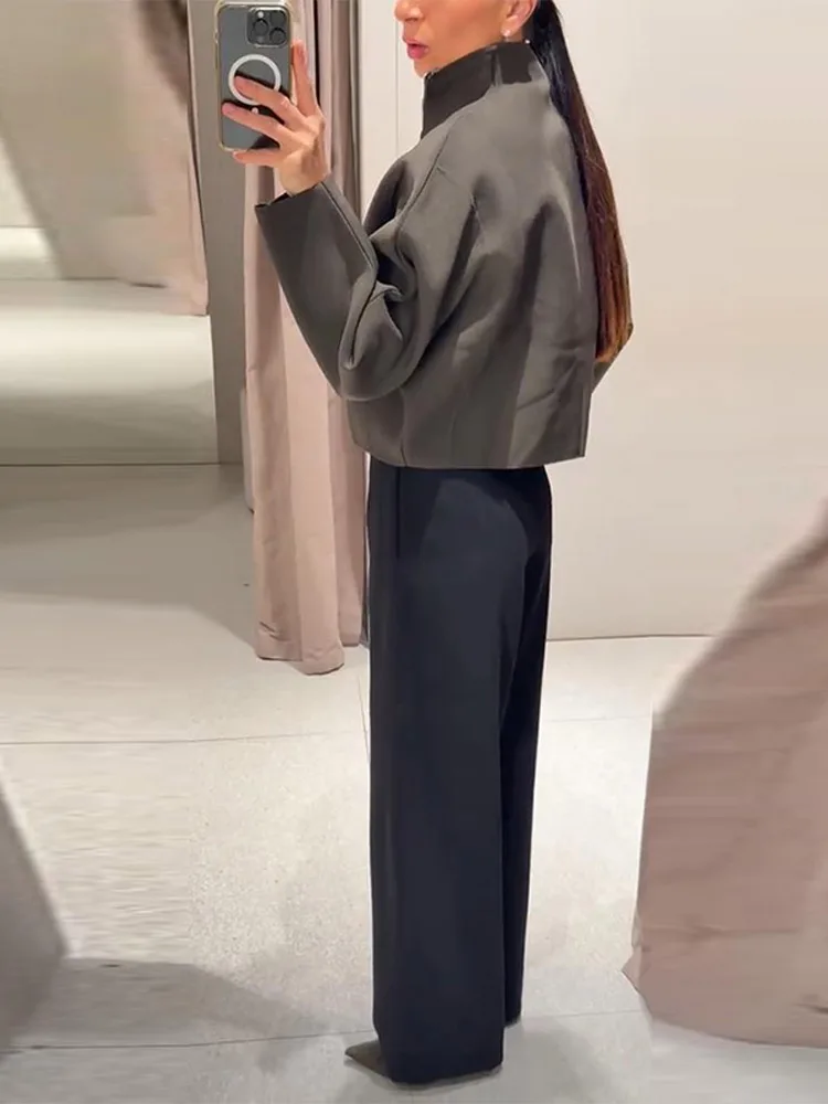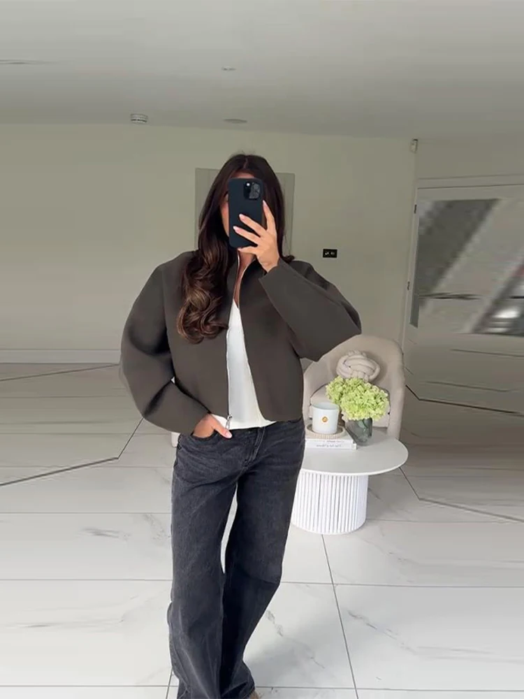 Vintage Stand Collar Women’s Cropped Jacket Zipper Loose Full Sleeve Thick Warm Coat 2025 Autumn Winter Lady New in Outwear