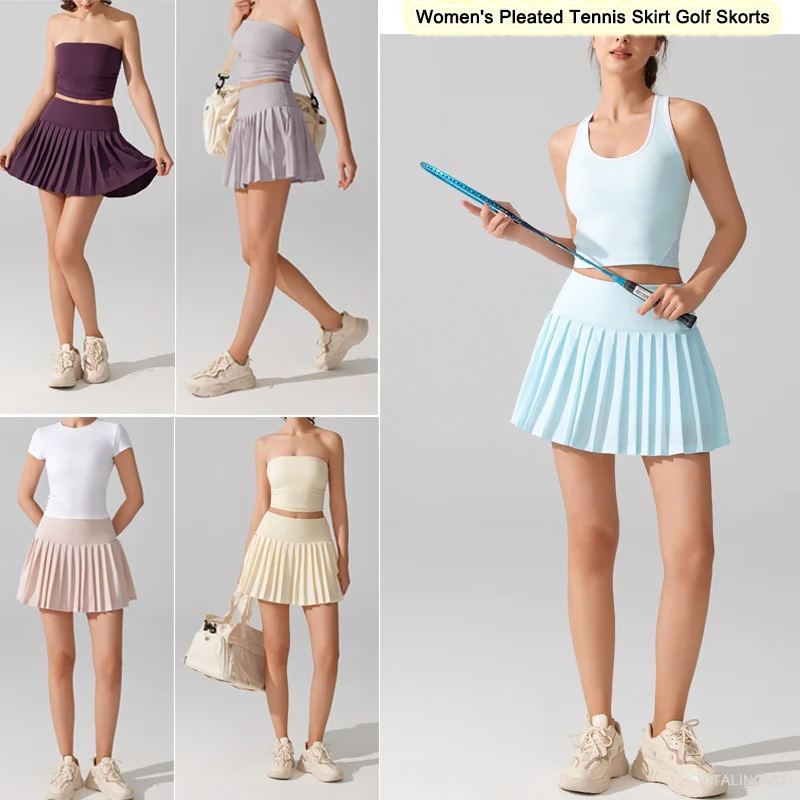 VITALINOVO Pleated Tennis Skirt for Women with Pocket Shorts Women’s High Waisted Lightweight Athletic Golf Skorts Skirts Flowy