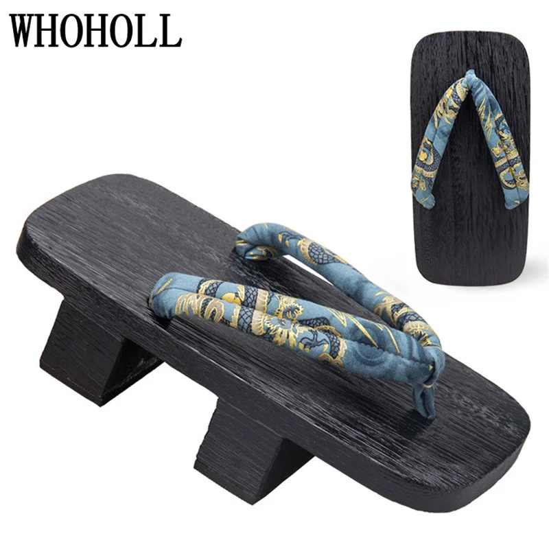 WHOHOLL Summer Men’s Two-tooth Clogs High Heel Thick Bottom Japanese Geta Solid Wooden Slippers Cosplay Shoes Costumes