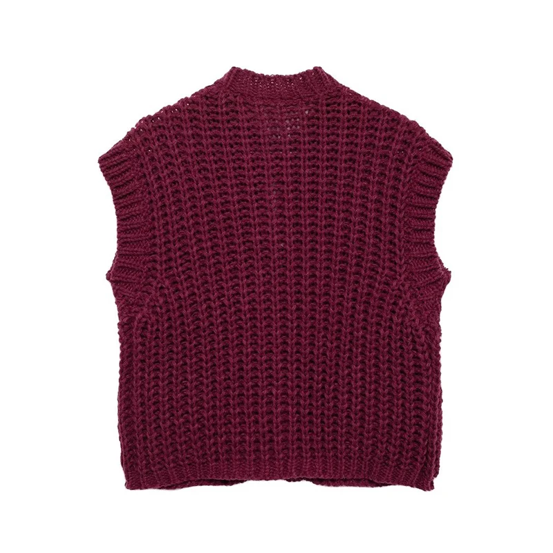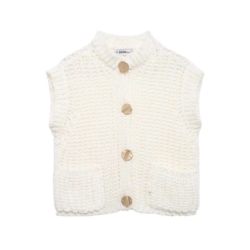 Willshela Women Fashion With Pockets Solid Single Breasted Knitted Vest Tank Tops Vintage O-Neck Sleeveless Female Chic Lady Top