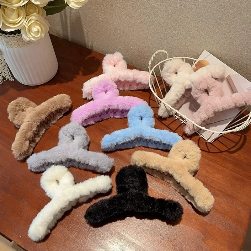 Winter Faux Fur Hair Claw for Women Elegant Acrylic Crab Barrette Hairpin Girl-Hair Accessories Furry Headwear Hair Claw Clip