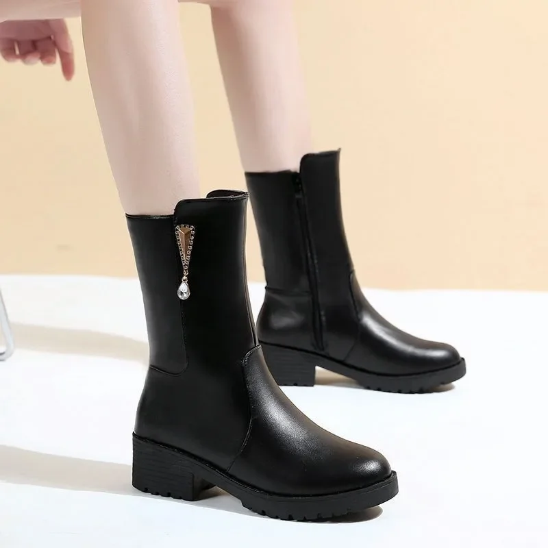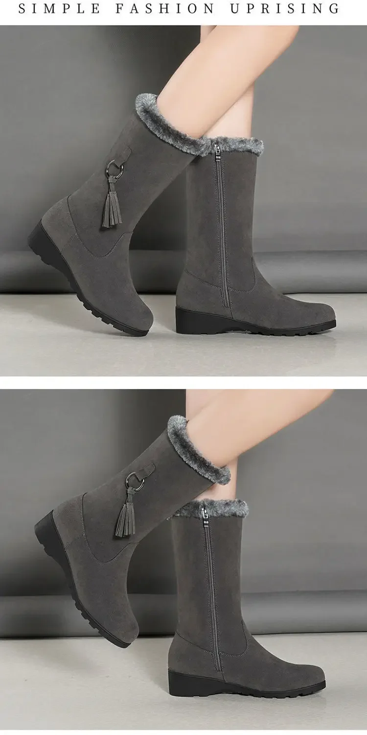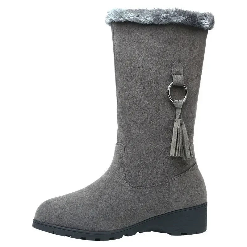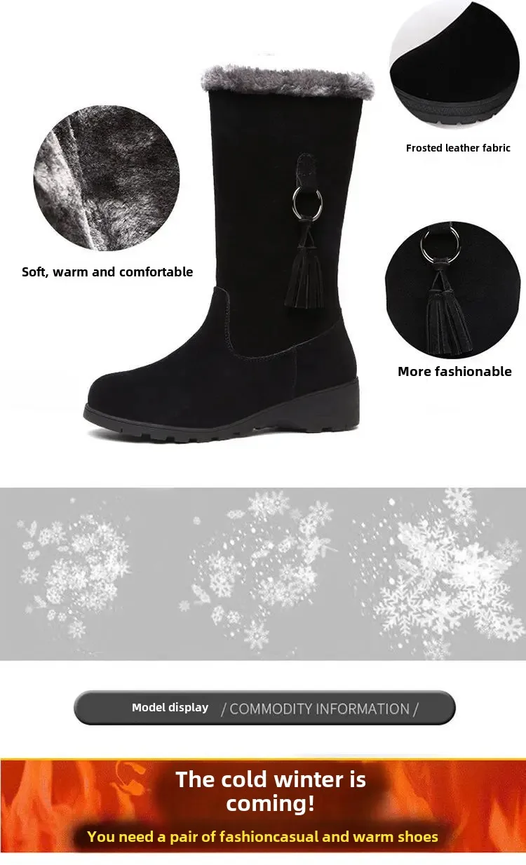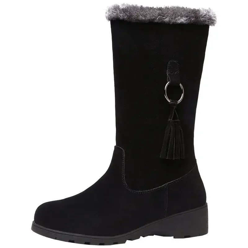 Winter New Arrival Korean Style Women’s Fleece-Lined Thickened Mid-Calf Warm Flat Bottom Side Zipper Snow Boots Rubber Material