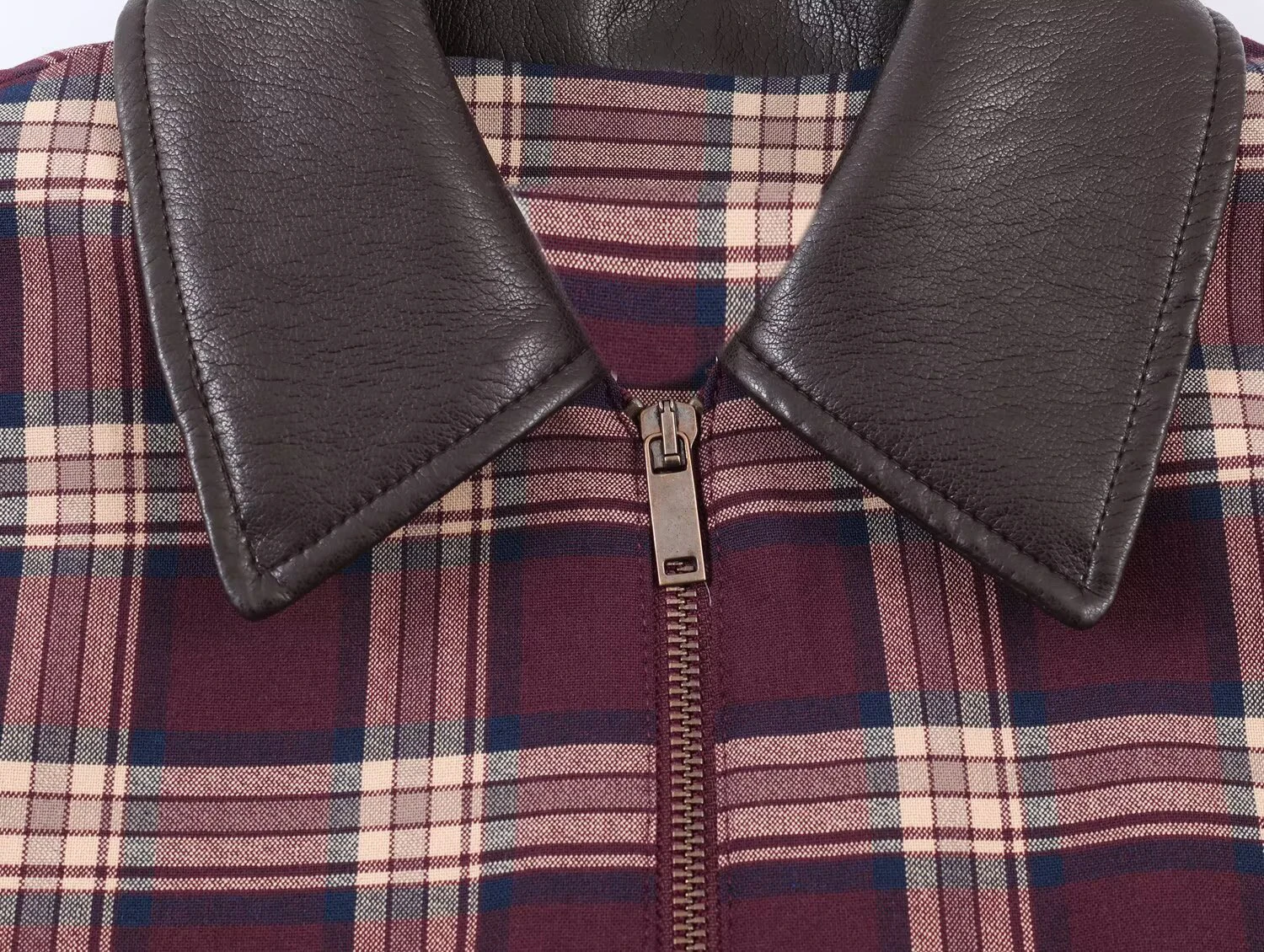 Winter new women’s clothing European and American leather effect checkered lapel jacket checkered wide pleated skirt pants set
