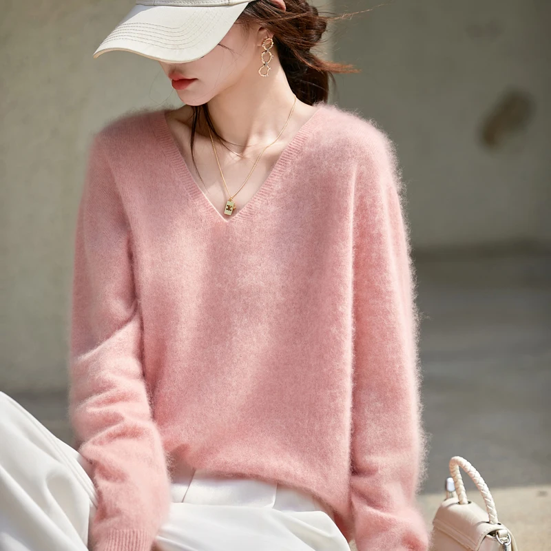 WinvyNee Winter Women’s Clothing Tops Brushed Wool V Neck Gray Warm Causal Sweaters Soft Solid Knitted Pullover Jumpers A1713002