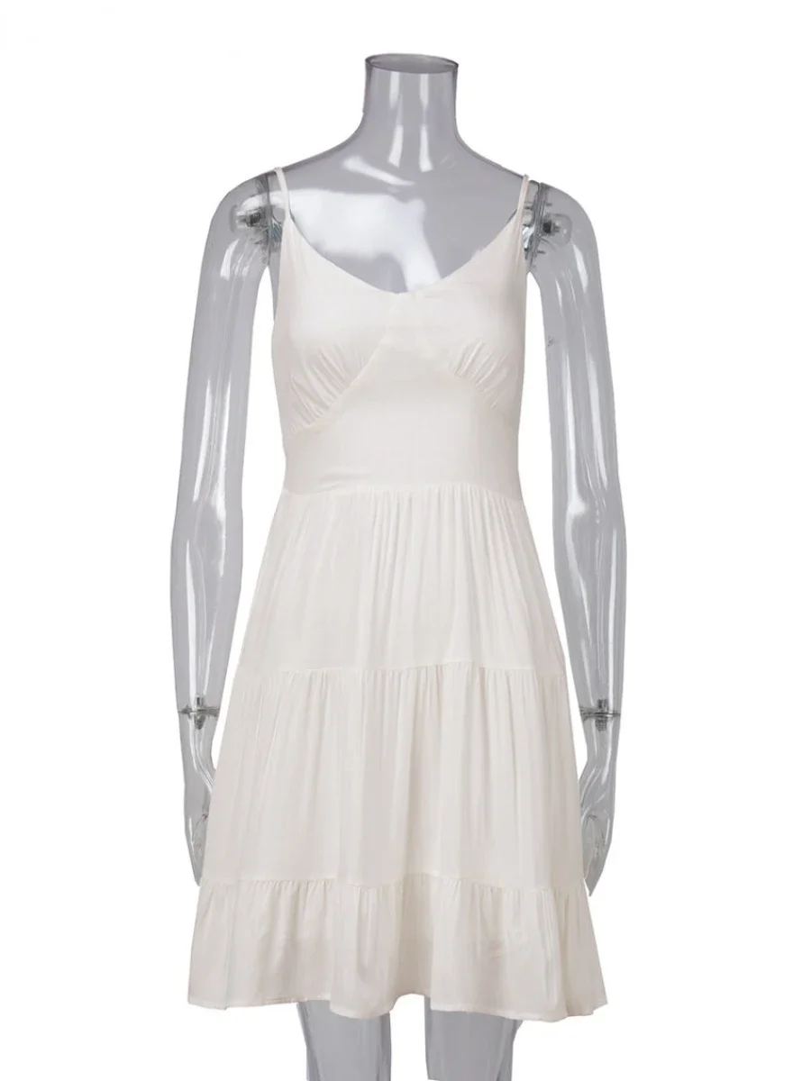 Wolfeel Spring Summer Women’s Linen Cotton Dress Vintage A-line Sling Dress Sexy Hot Girl V-neck Camisole RUFFLES Dress