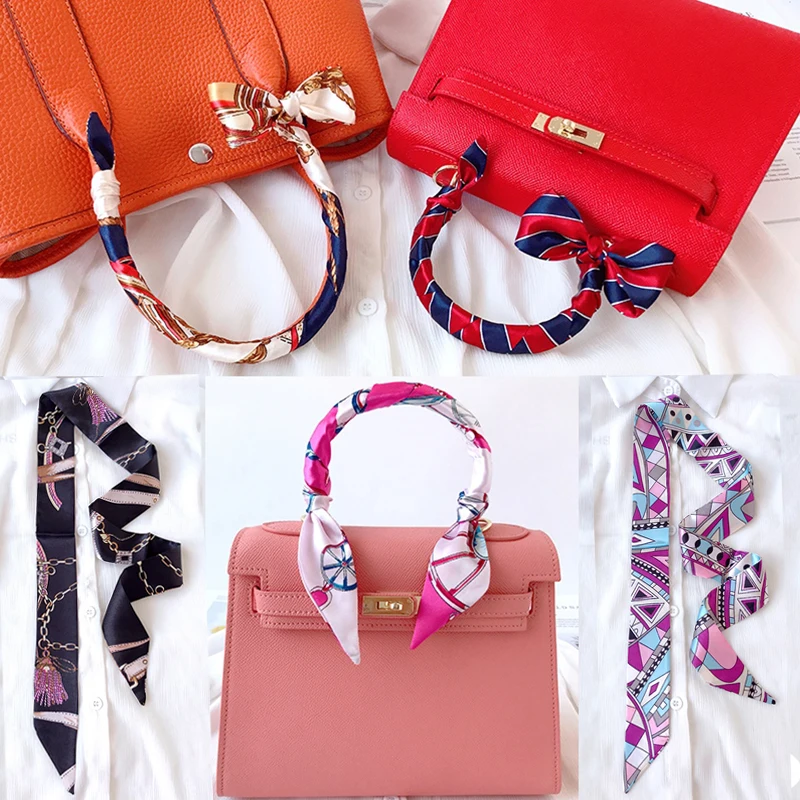 Woman Skinny Silk Scarf 90cm*4cm Long Hair Strip Silk Ribbon Small Neck Scarves Bag Handle Ribbon Scarf Kerchief Ladies Tie