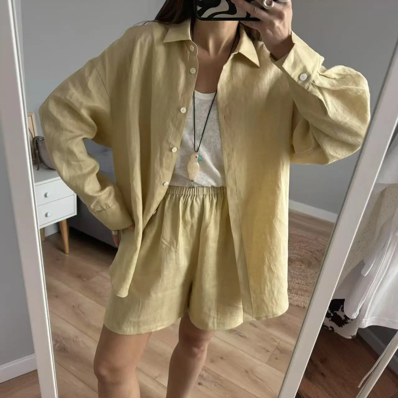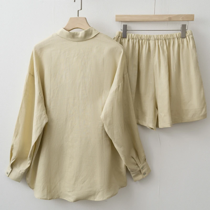Women 2025 Summer Casual Linen Blouse Shorts Sets