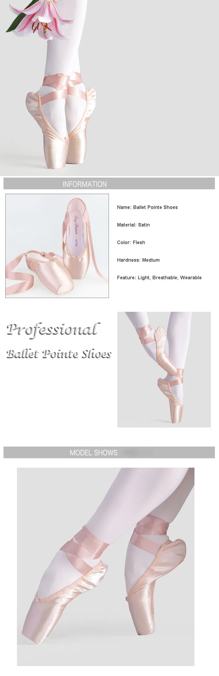 Professional Satin Canvas Dance Ballet Pointe Shoes Girls Adult Women Ballet Shoes