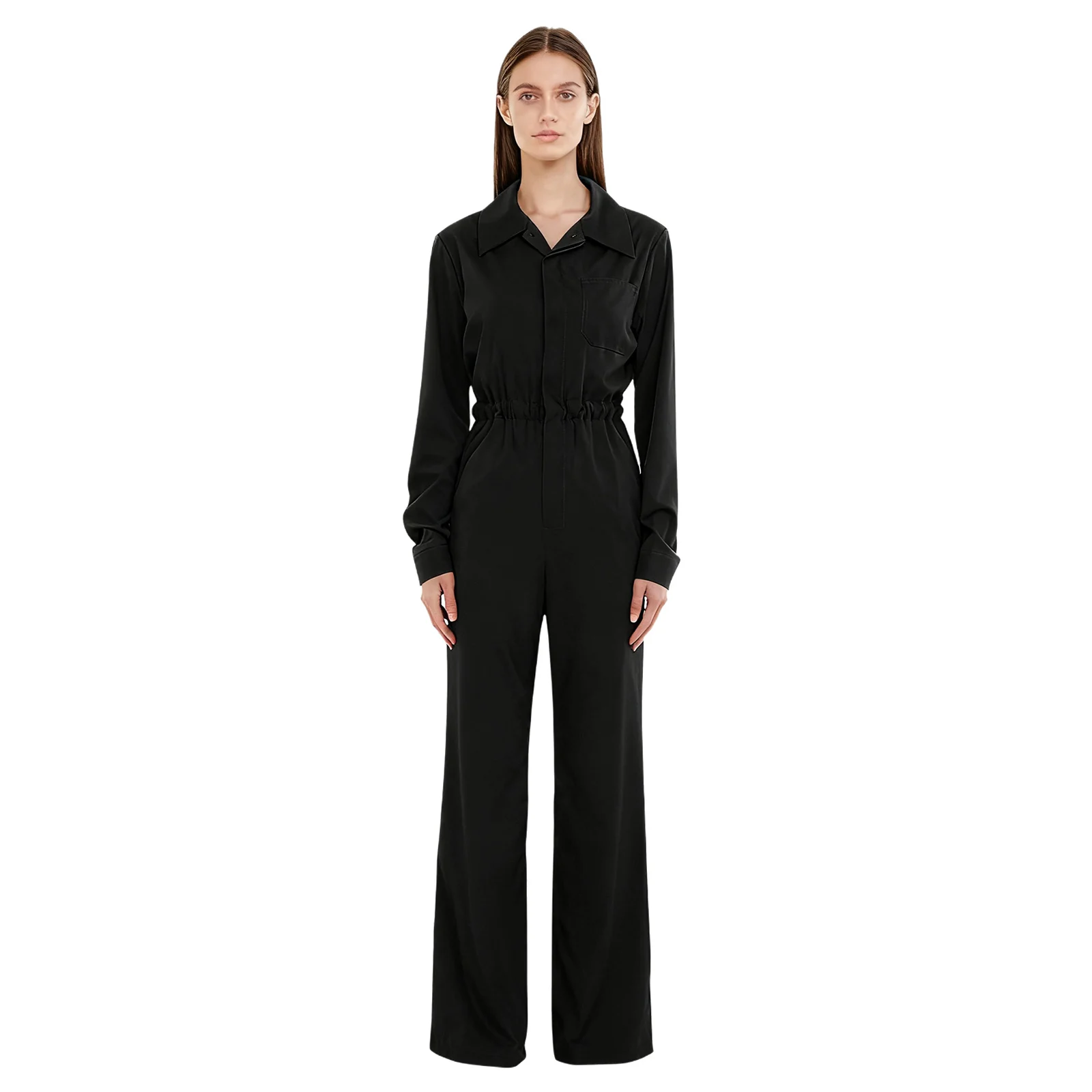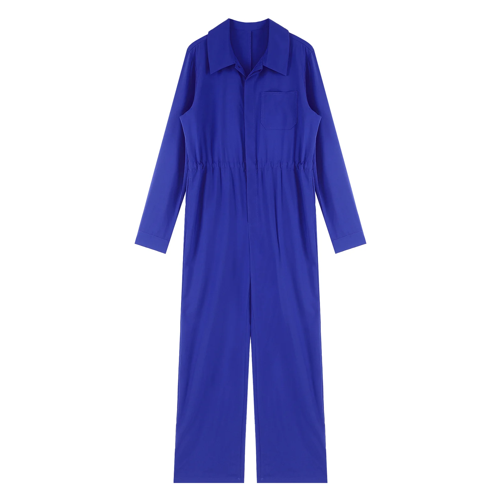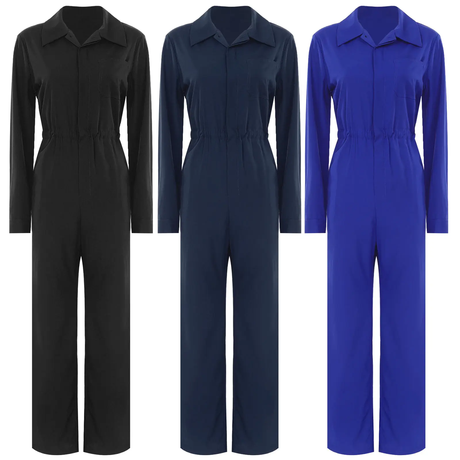 Women’s turn-down collar long sleeve coverall with a drawstring inside, which provide you with a snug fit.