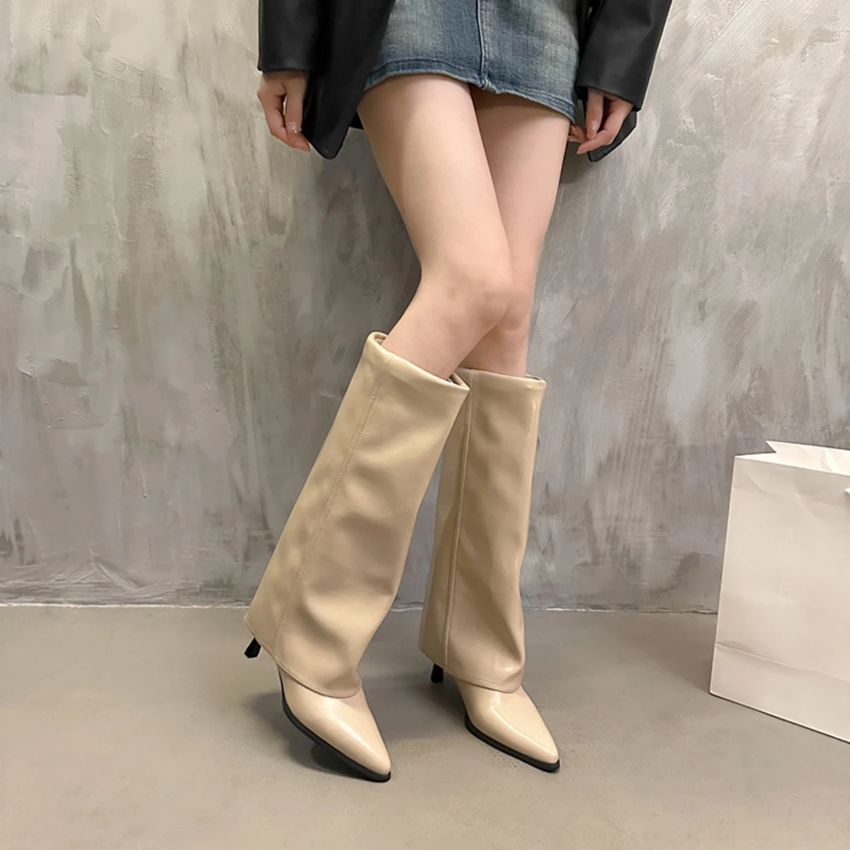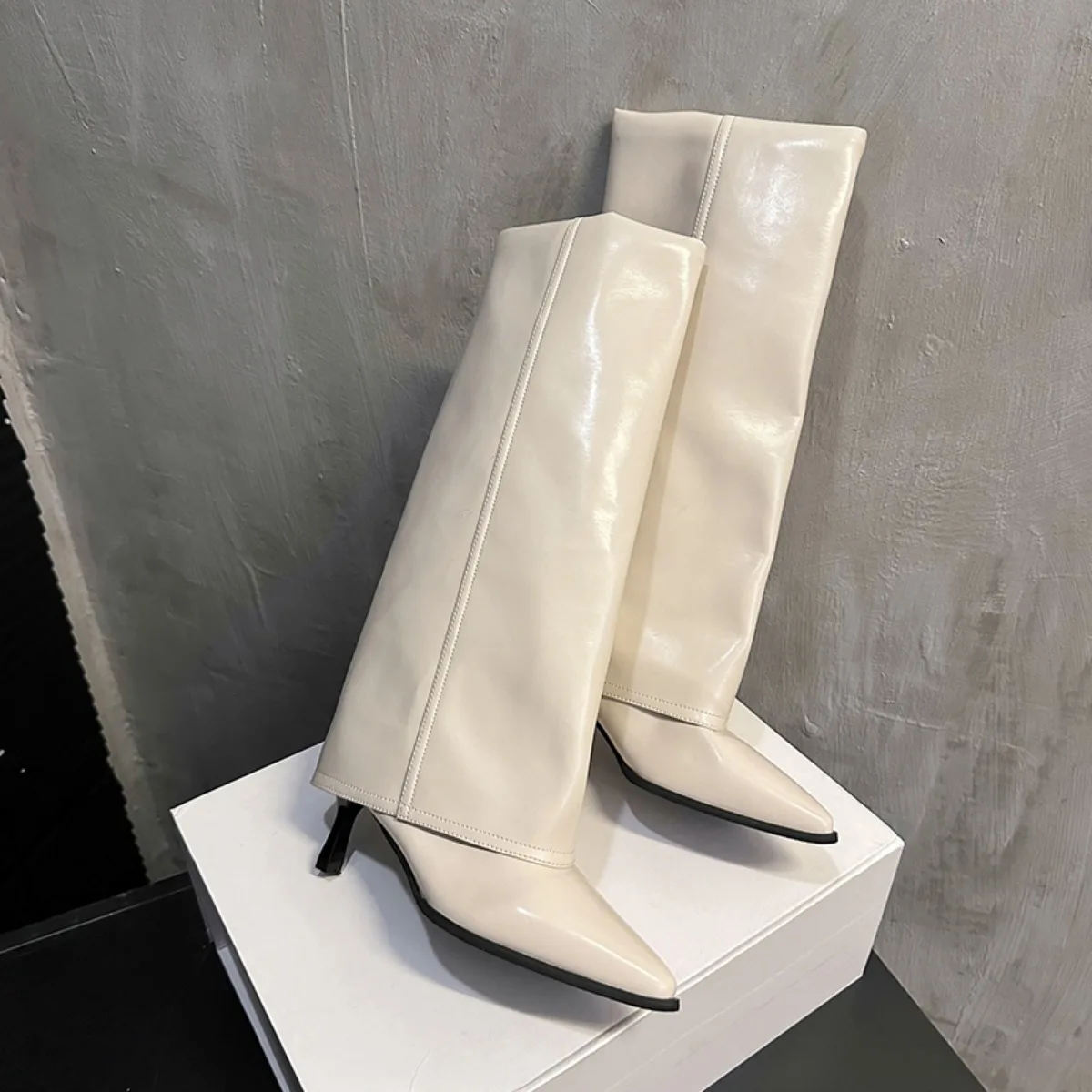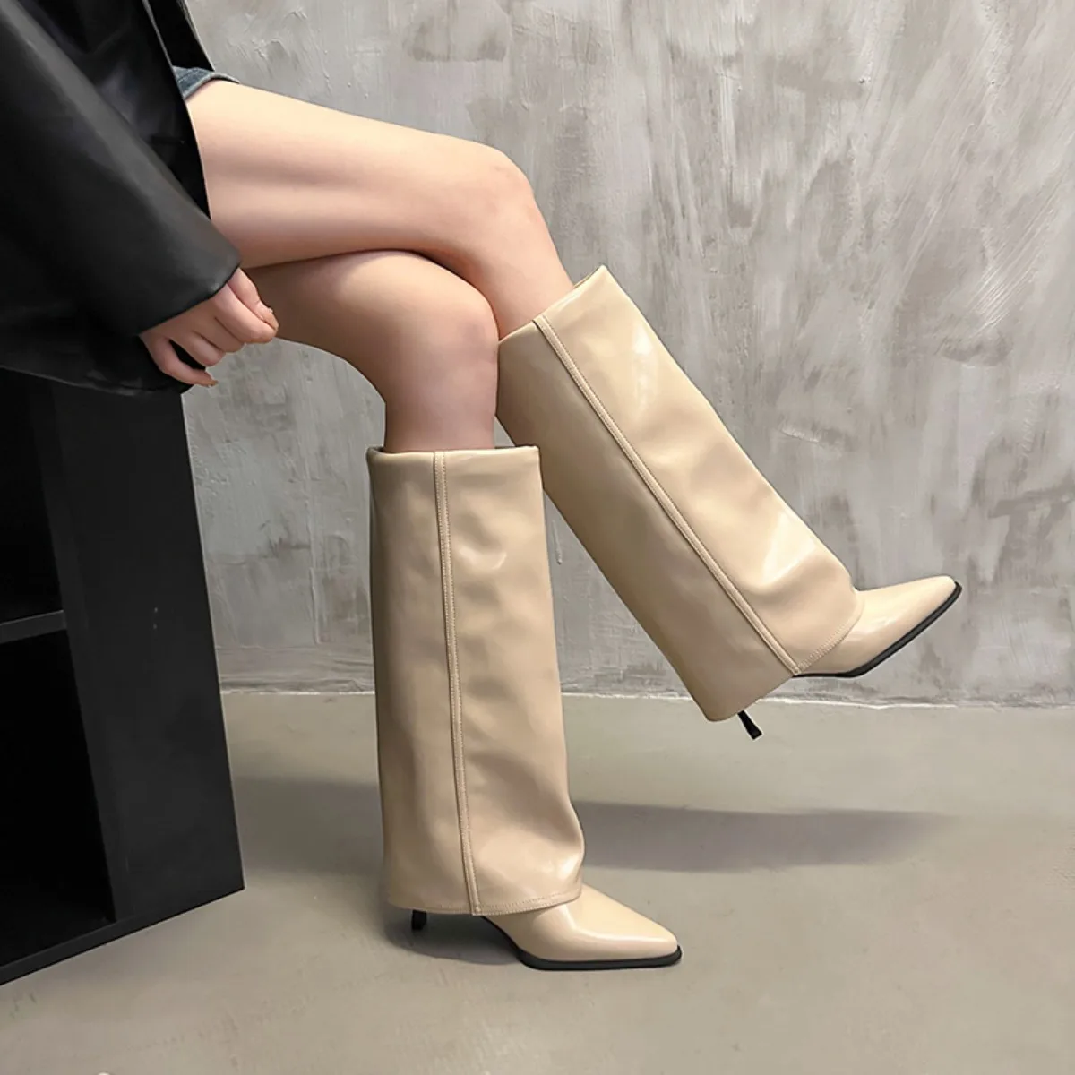 Women Chunky High Boots Pointed Toe Sexy Solid Color Design Autumn and Winter New 2024 Trend Retro Fad Woman Boots Size 35-42
