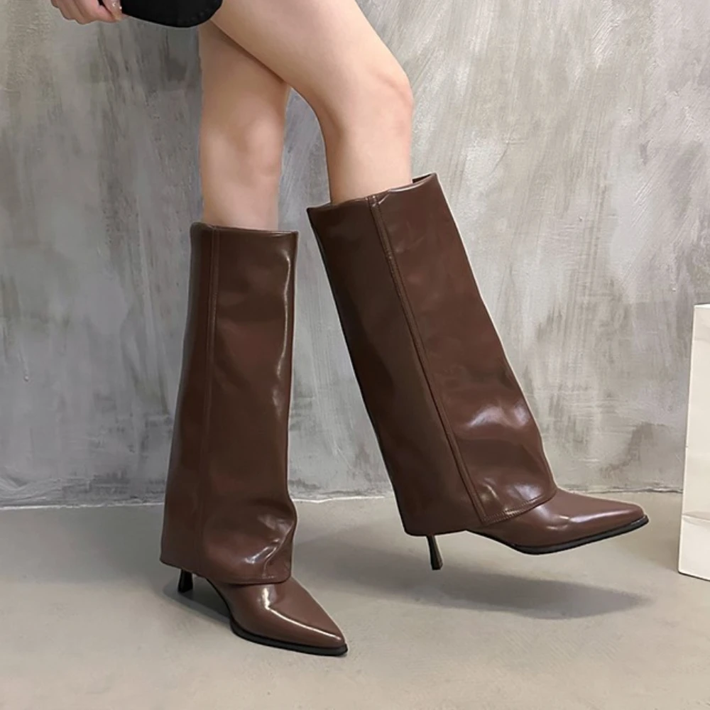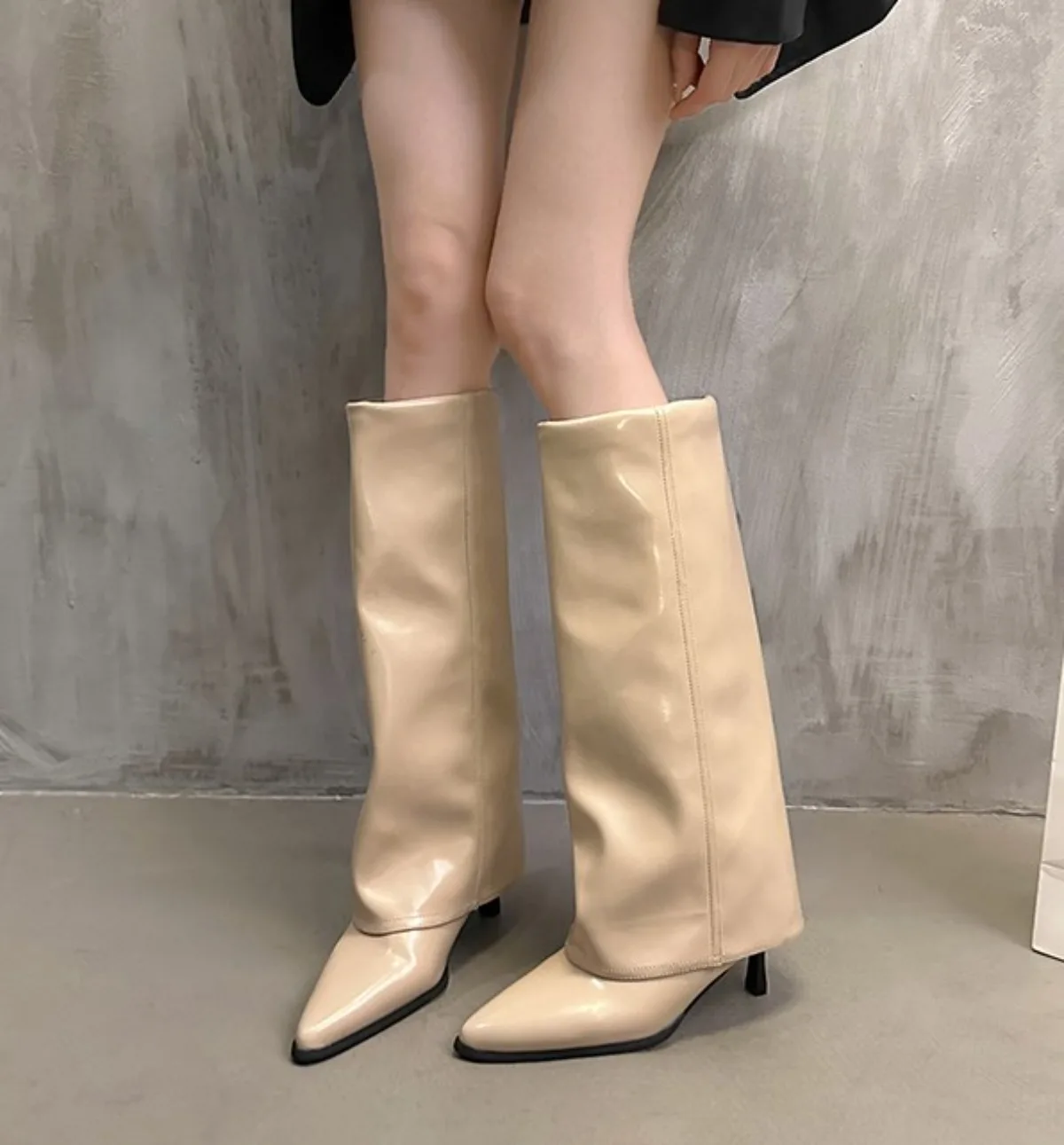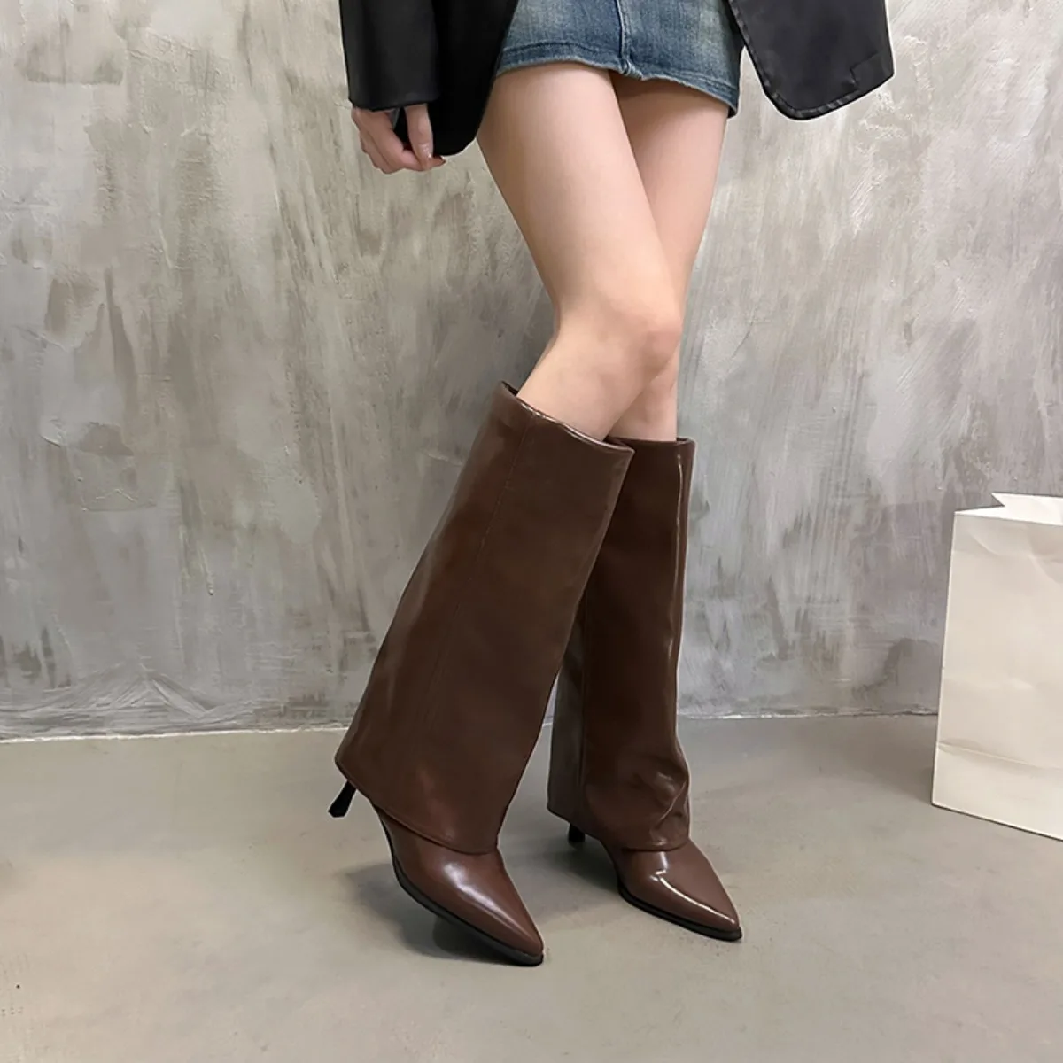 Women Chunky High Boots Pointed Toe Sexy Solid Color Design Autumn and Winter New 2024 Trend Retro Fad Woman Boots Size 35-42