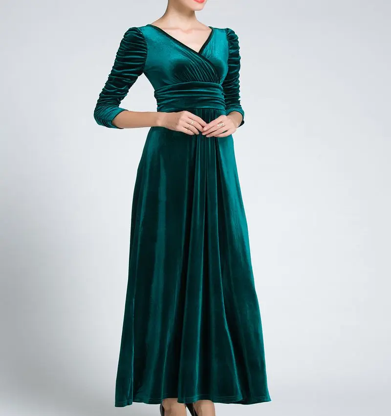 Women Clothing Plus Size Long Dress Velvet Autumn V-Neck Evening Bridesmaid Party Prom Abayas Muslim kaftan African Maxi Dress