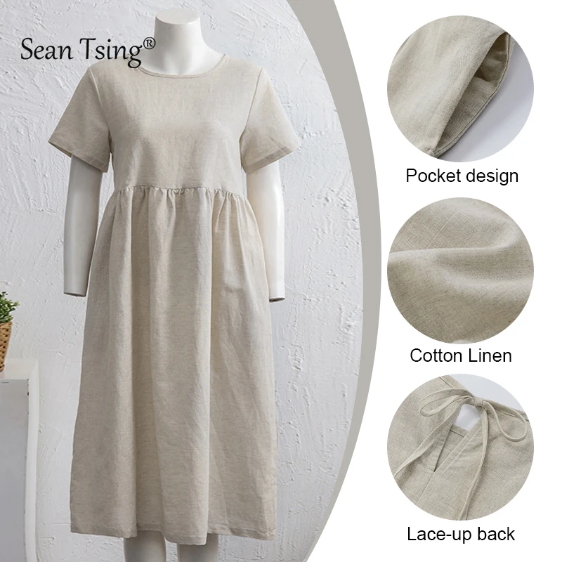 Crafted from premium cotton linen, this dress offers breathability and comfort for summer wear.