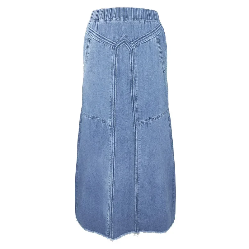 Women Denim Long Skirts Loose A Line Elastic High Waist Skirt Solid Pockets Jeans Casual Elegant Office Lady Autumn 2024