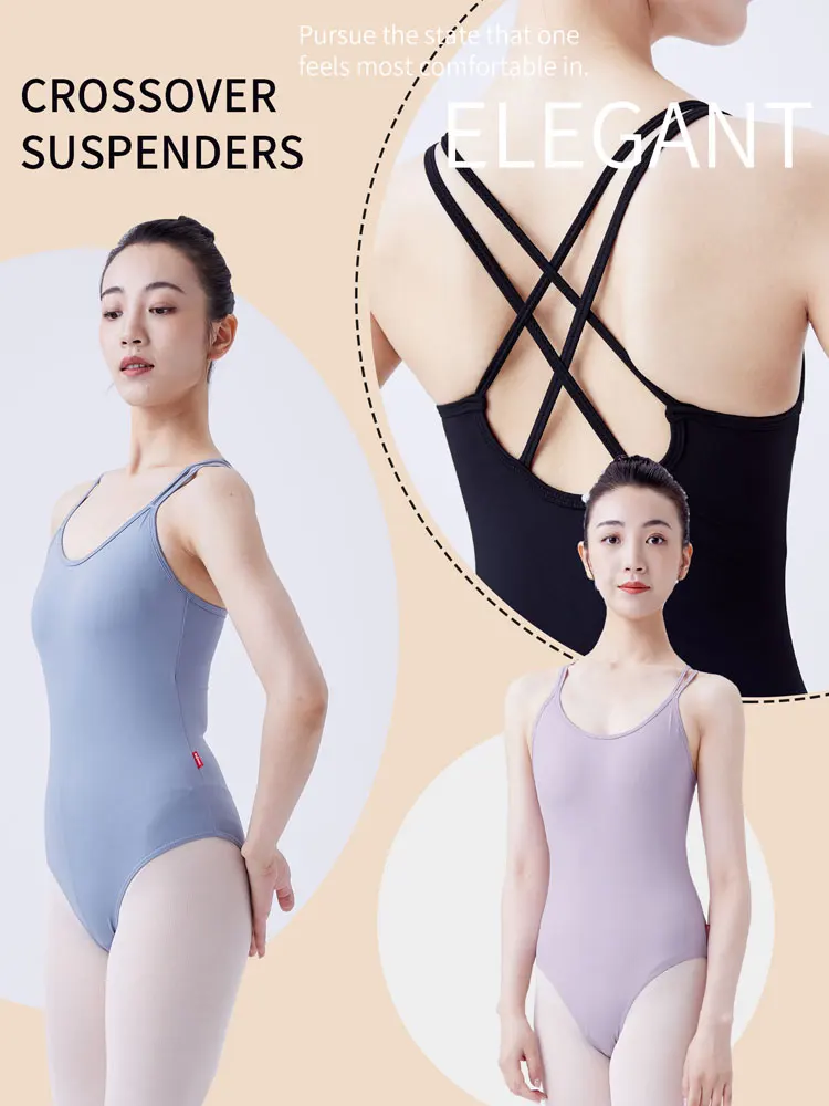 Women Double Camisole Ballet Leotards Black Gymnastic Bodysuit High Elastic Dance Clothing Comfort Ballerina Outfits Cross Back
