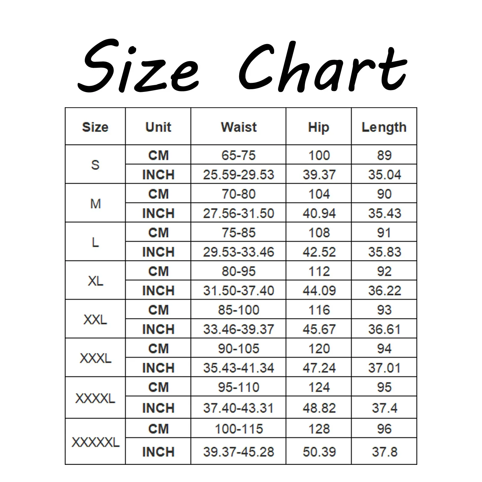 {"sizeInfoList":[{"length":{"cm":"65-75","inch":"25.59-29.53"},"size":"S","vid":-1},{"length":{"cm":"70-80","inch":"27.56-31.50"},"size":"M","vid":-2},{"length":{"cm":"75-85","inch":"29.53-33.46"},"size":"L","vid":-3},{"length":{"cm":"80-95","inch":"31.50-37.40"},"size":"XL","vid":-4},{"length":{"cm":"85-100","inch":"33.46-39.37"},"size":"XXL","vid":-5},{"length":{"cm":"90-105","inch":"35.43-41.34"},"size":"XXXL","vid":-6},{"length":{"cm":"95-110","inch":"37.40-43.31"},"size":"XXXXL","vid":-7},{"length":{"cm":"100-115","inch":"39.37-45.28"},"size":"XXXXXXL","vid":-8}]} |