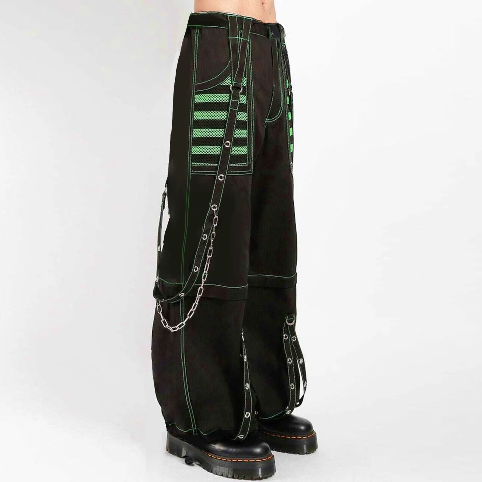 Women Fall Winter Cargo Jeans Striped Zipper Button Closure Loose Casual Trousers Streetwear with Pockets