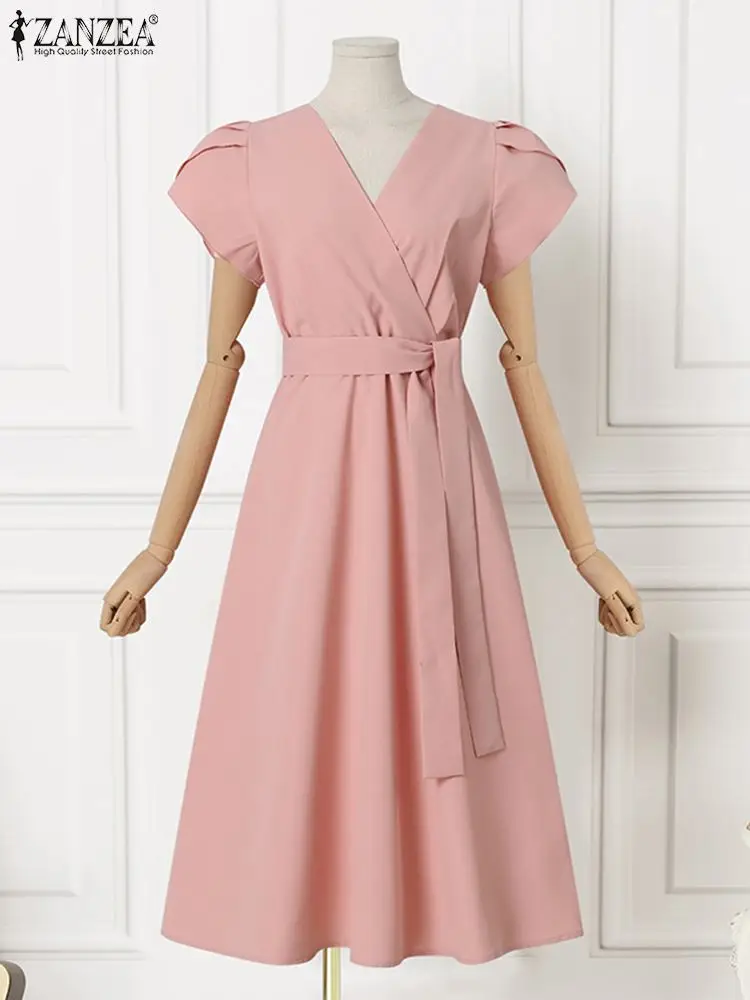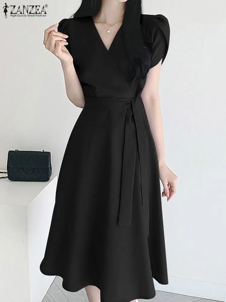 Women Fashion OL Work Sundress ZANZEA Elegant Summer Short Sleeve Dress Casual Solid A Line Vestido Kaftan Sarafans Robe Femme