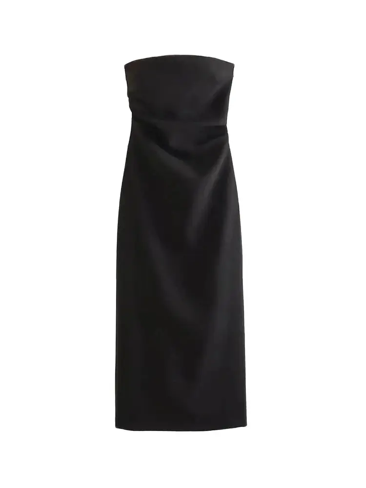 Women Fashion Strapless Gathered Midi Dress Sexy Straight Neck Back Slit Female Dresses Vestidos Mujer