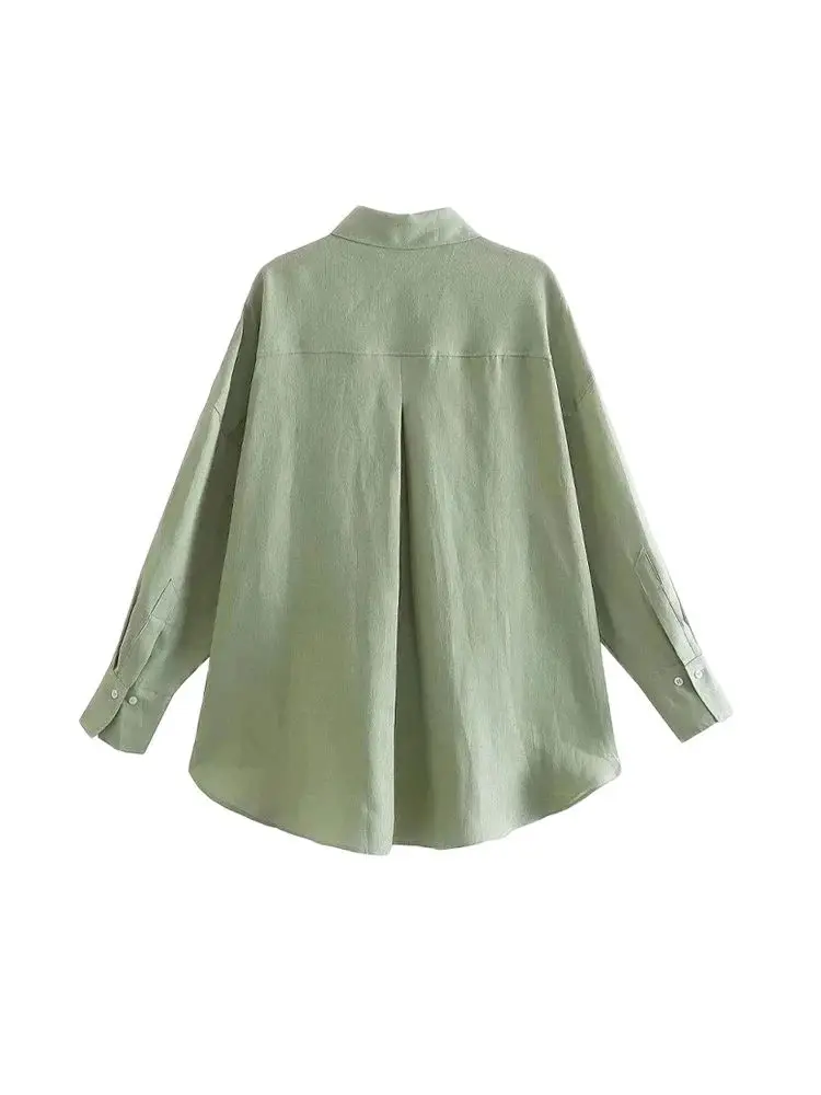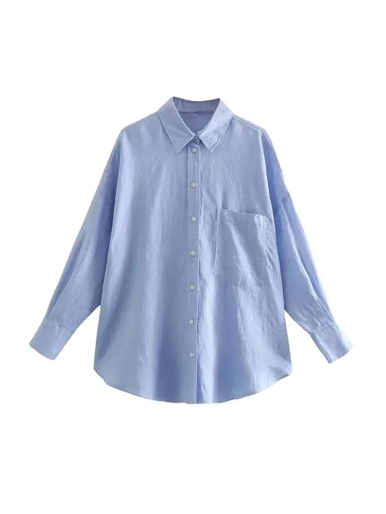 Women Fashion With Pocket Oversized Shirts Vintage Long Sleeve Button-up Female Blouses Blusas Chic Tops