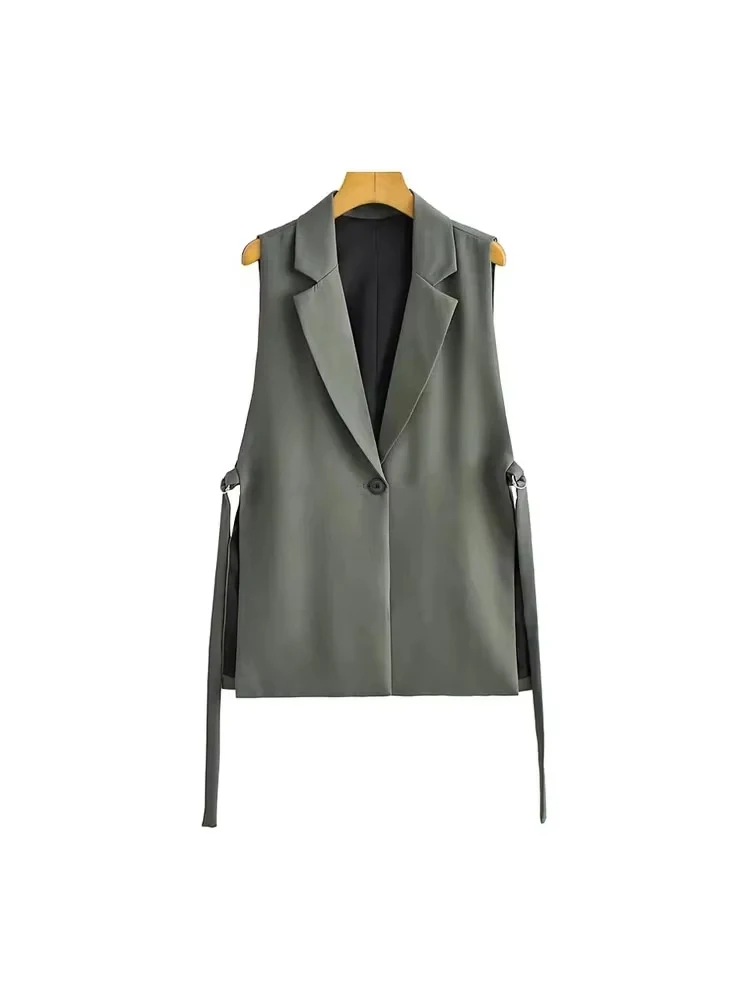 Women Fashion With Taps Side Vents Waistcoat Vintage Sleeveless Front Button Female Outerwear Chic Vest Tops