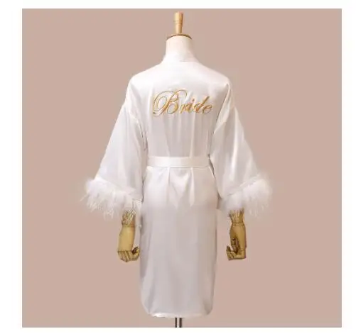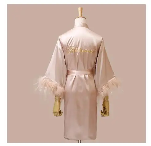 Women FEATHER Bride Bridesmaid Wedding Robe Satin Kimono Bathrobe Gown Nightwear Embroidery Letter Nightgown V-Neck Lingerie