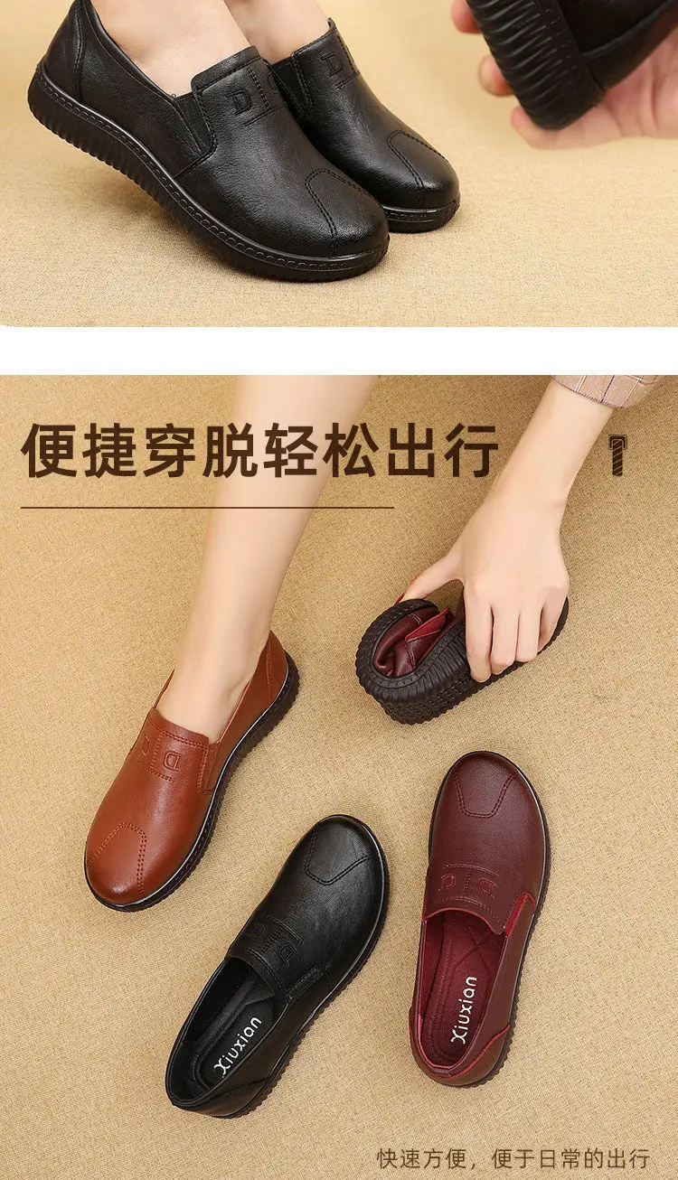 Women Genuine Leather Shoes Spring Autumn Brown Female Casual Shoes Black Mom Ladies Cozy Classic Leisure Loafer Shoes