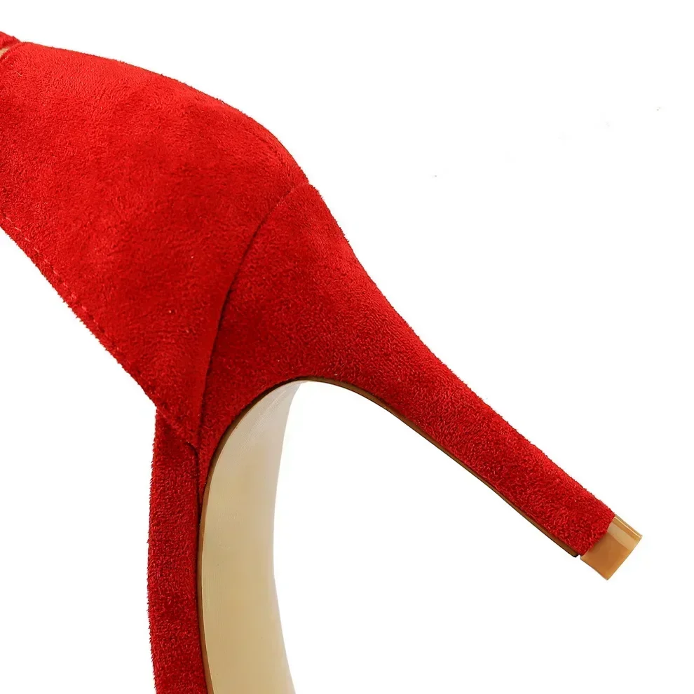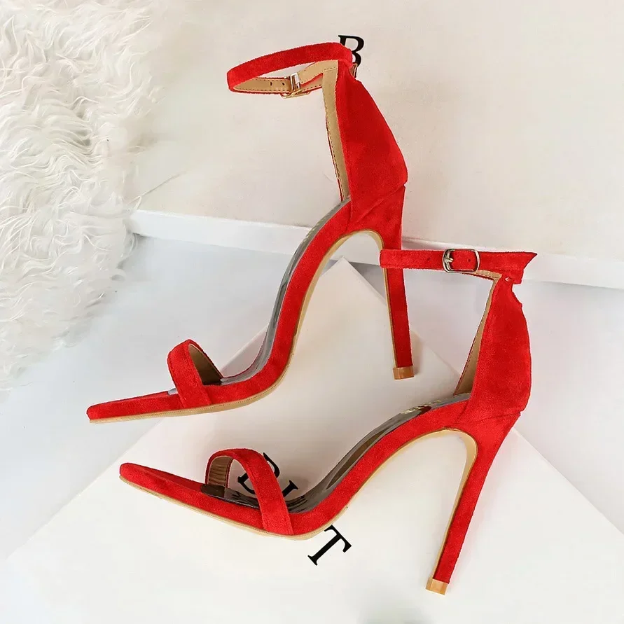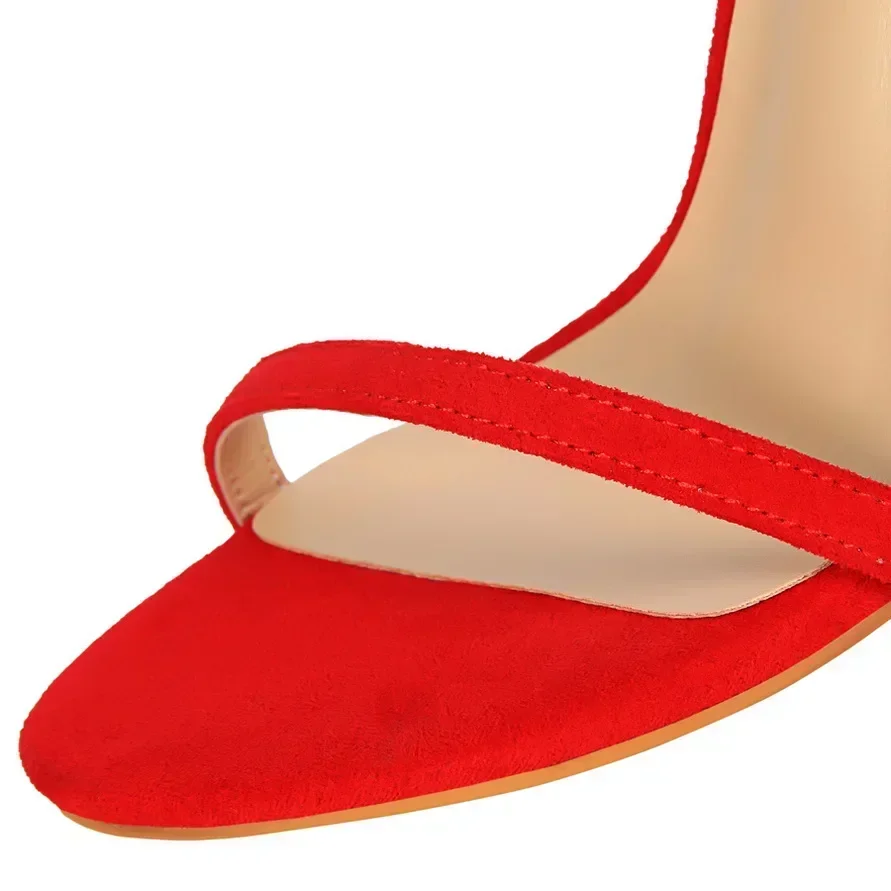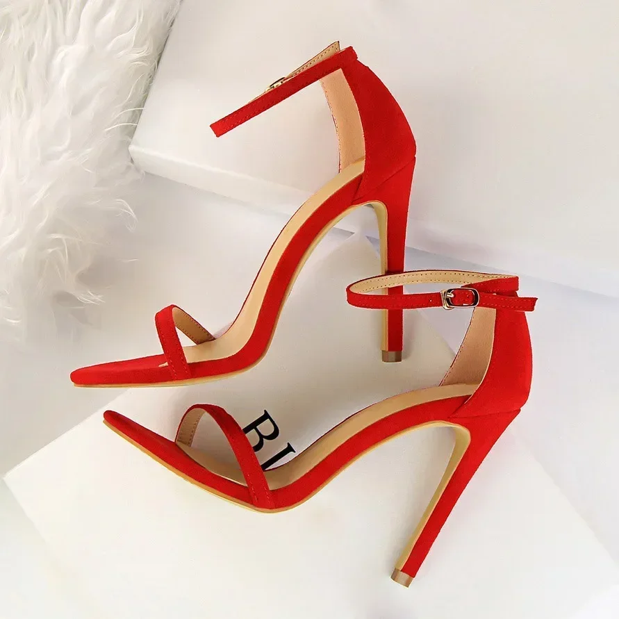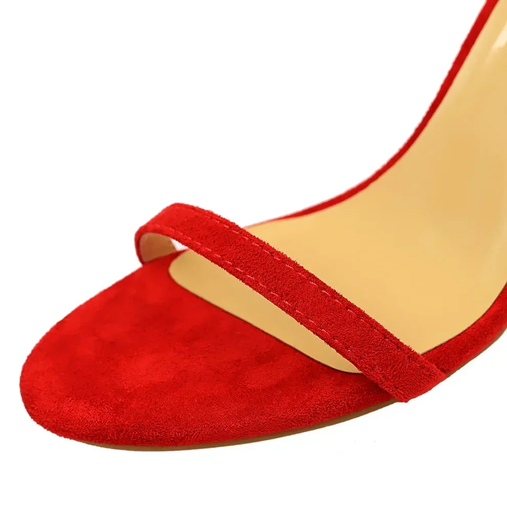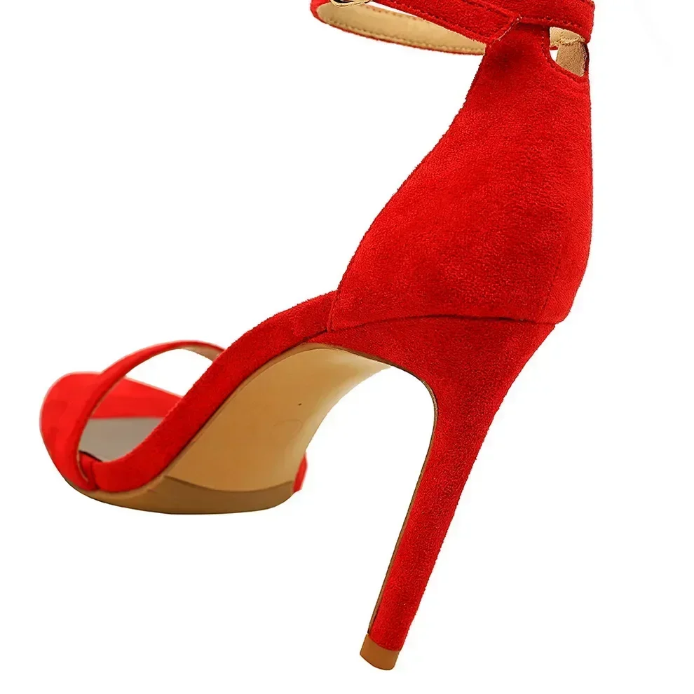 Women Gladiator Stiletto Classic Ankle Strap Holiday Beach Sandals Lady Fashion Suede 8cm 11cm High Heels Sexy Red Brown Sandles