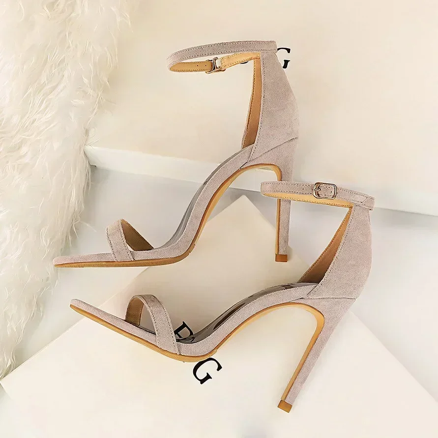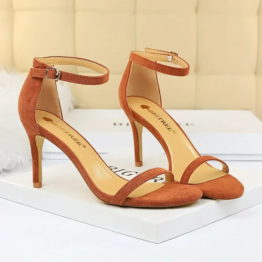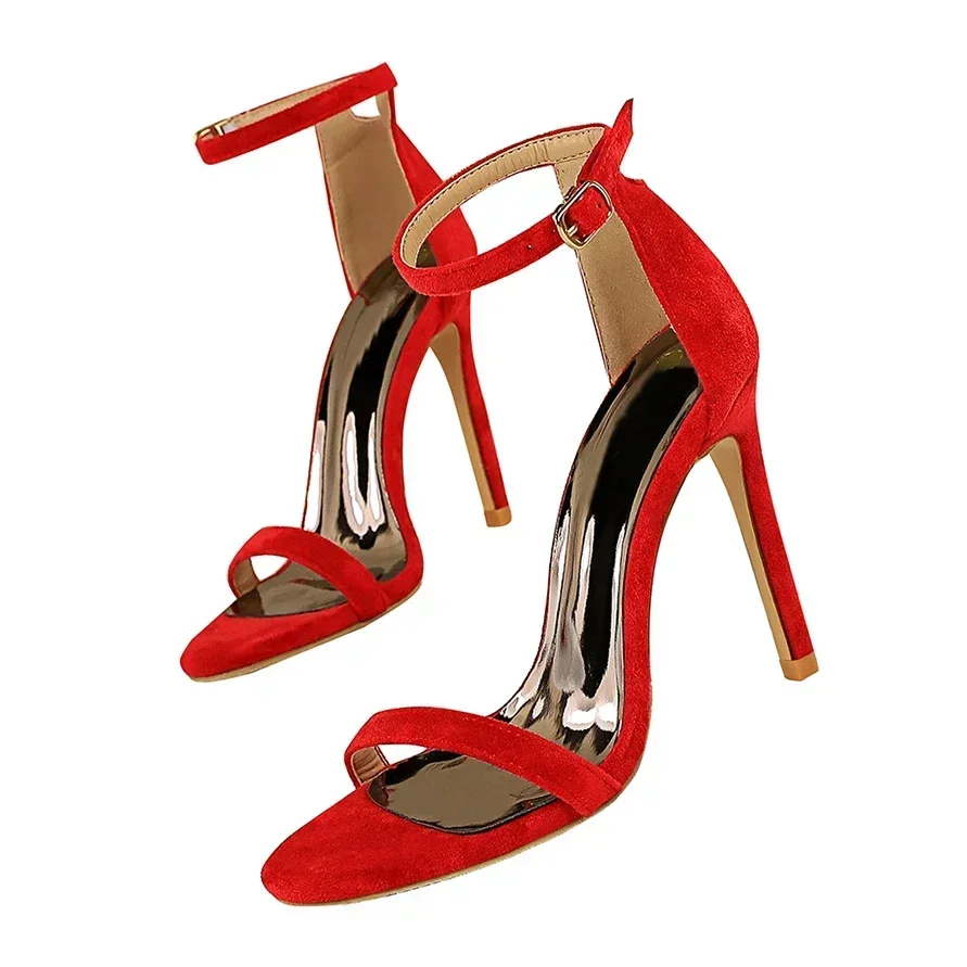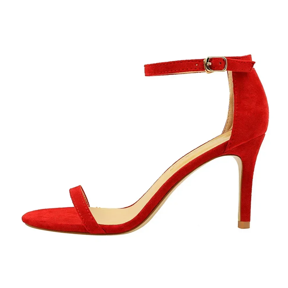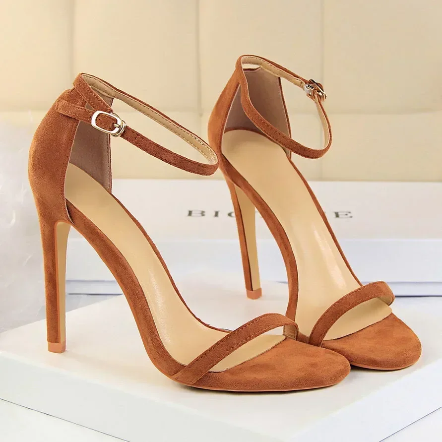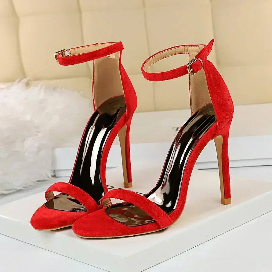 Women Gladiator Stiletto Classic Ankle Strap Holiday Beach Sandals Lady Fashion Suede 8cm 11cm High Heels Sexy Red Brown Sandles