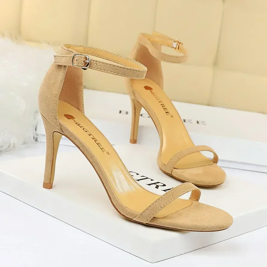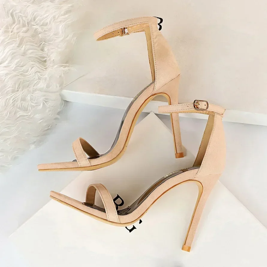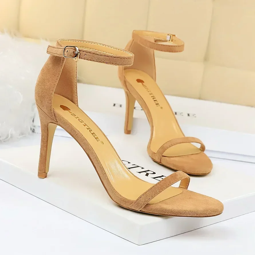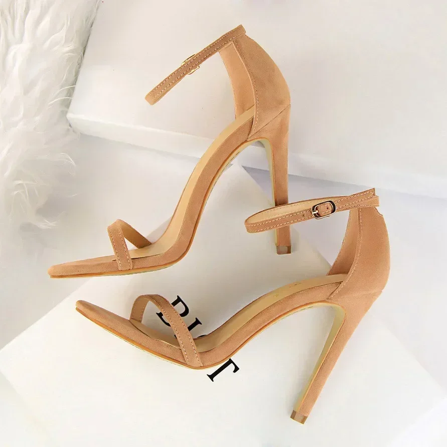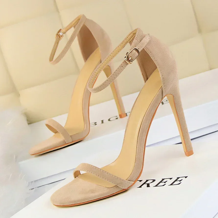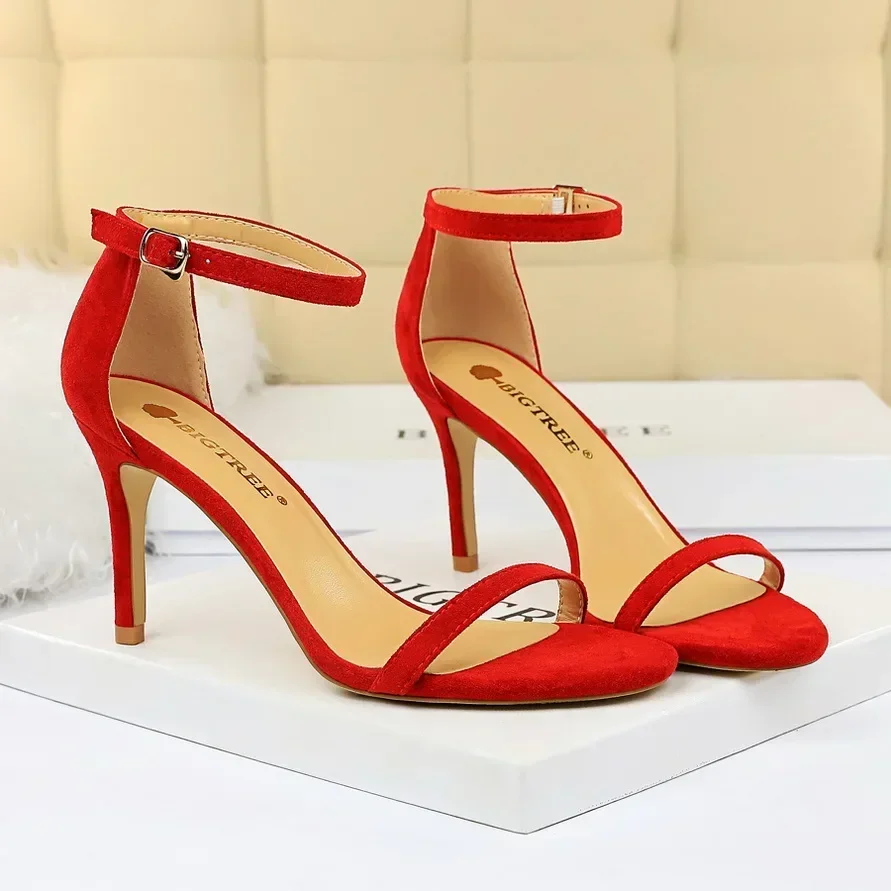 Women Gladiator Stiletto Classic Ankle Strap Holiday Beach Sandals Lady Fashion Suede 8cm 11cm High Heels Sexy Red Brown Sandles