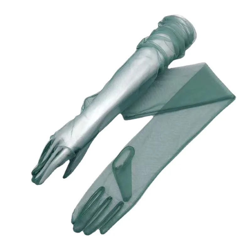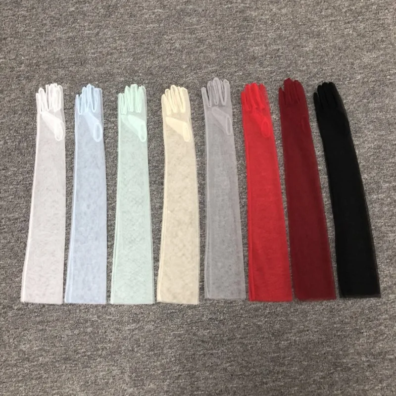 Women Long Sheer Tulle Gloves for Bridal Wedding Accessories Party Transparent Finger Gloves