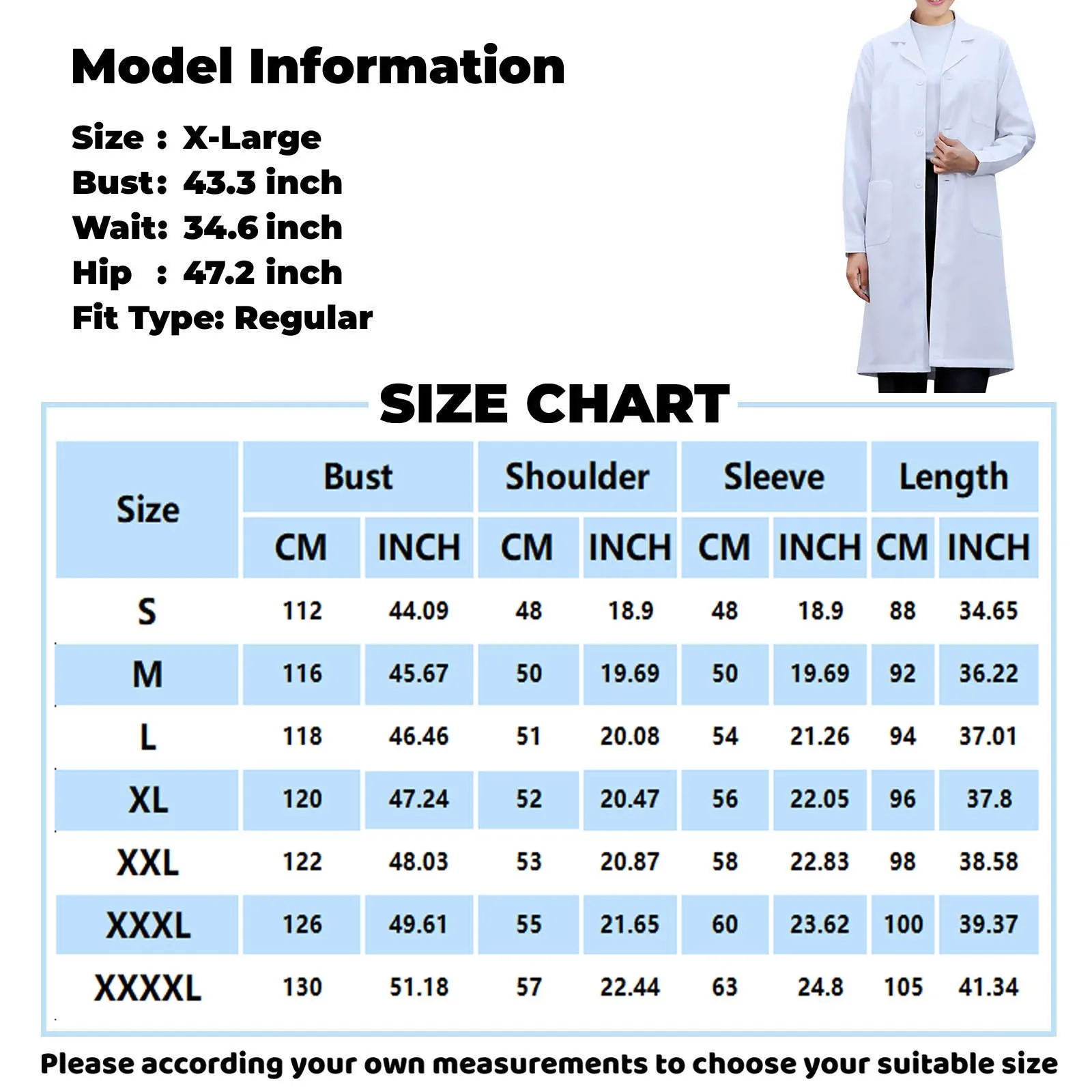 Women Men Unisex Long Sleeve White Lab Coat Notched Lapel Collar Button Down Medical Nurse Doctor Uniform Tunic Blouse