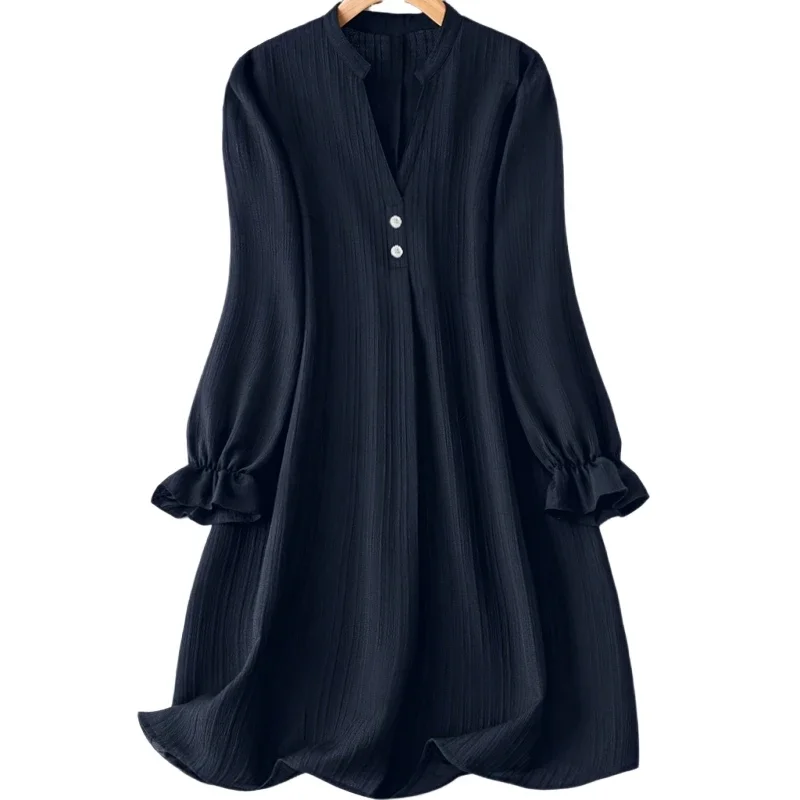 Women Plus Size 1XL-5XL Fashion Solid Color Button Front Shirt Dress Ladies Casual Long Sleeve Notched Neck Elegant Dress