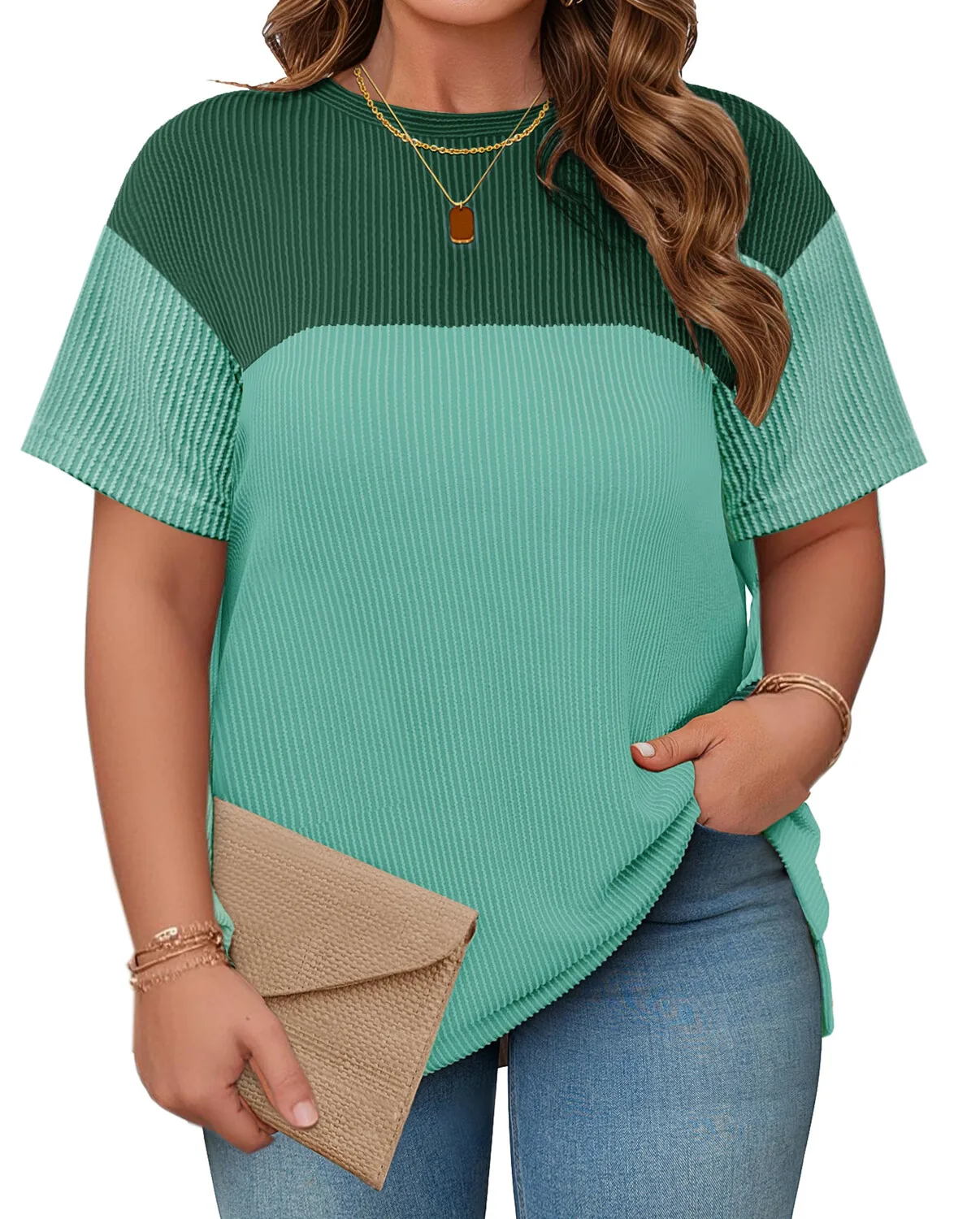 Women Plus Size Summer Tunic Tops O-neck Short Sleeve Casual Blouse