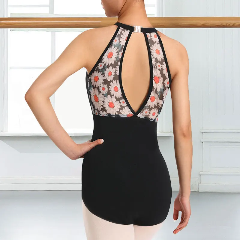 Mesh leotard with beautiful daisy pattern, breathable and soft, let you keep cool on the stage performance, durable and elastic, not easy to tear.