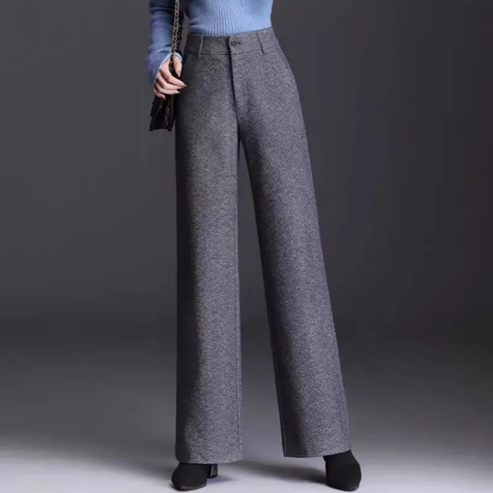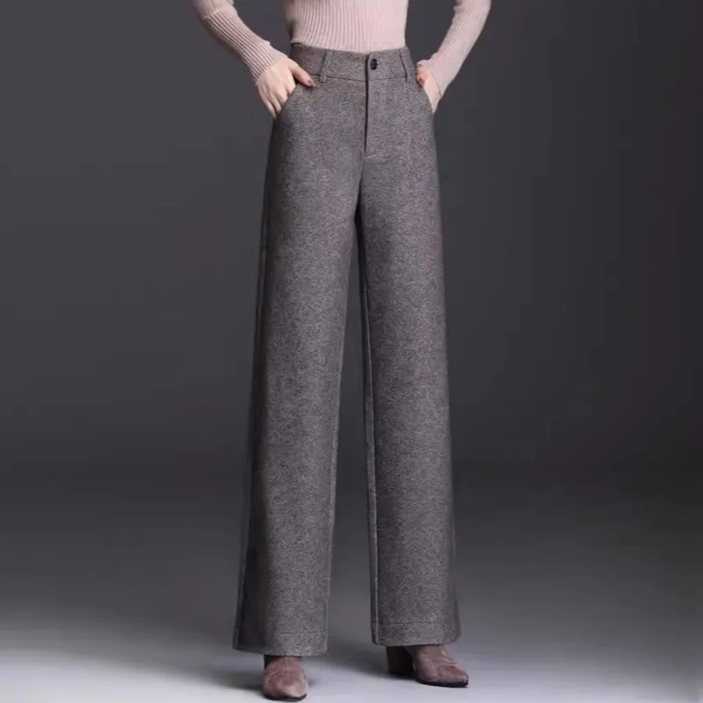Women Thick Woolen Wide Leg Casual Pants For Autumn Winter Oversize 6XL Wool High Waisted Straight Leg Warm Trousers Plus Size