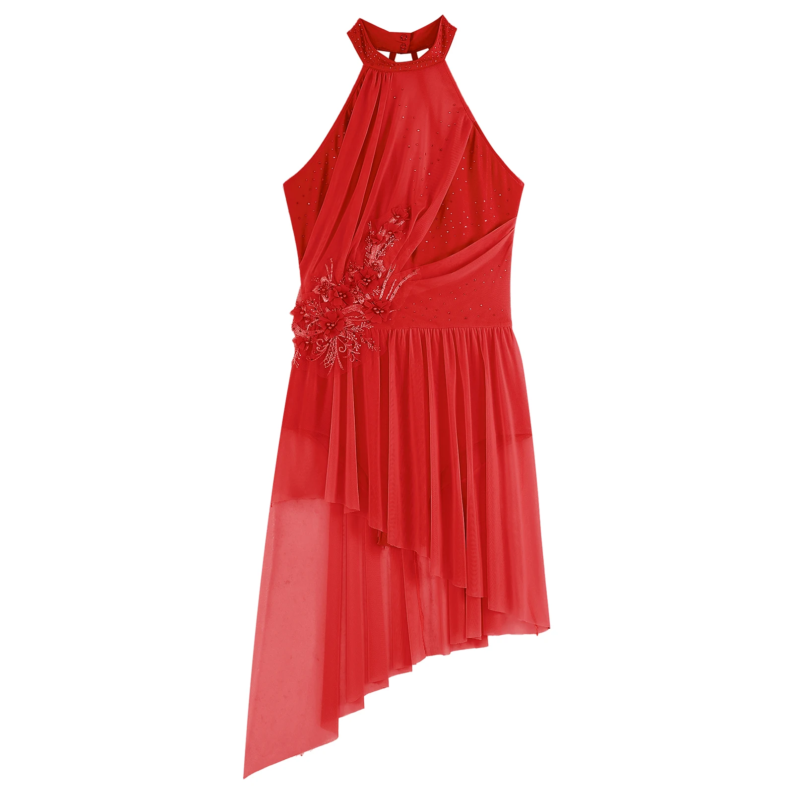 Women’s sleeveless dance dress is embellished with shiny rhinestones and delicate applique to make you look more stunning.